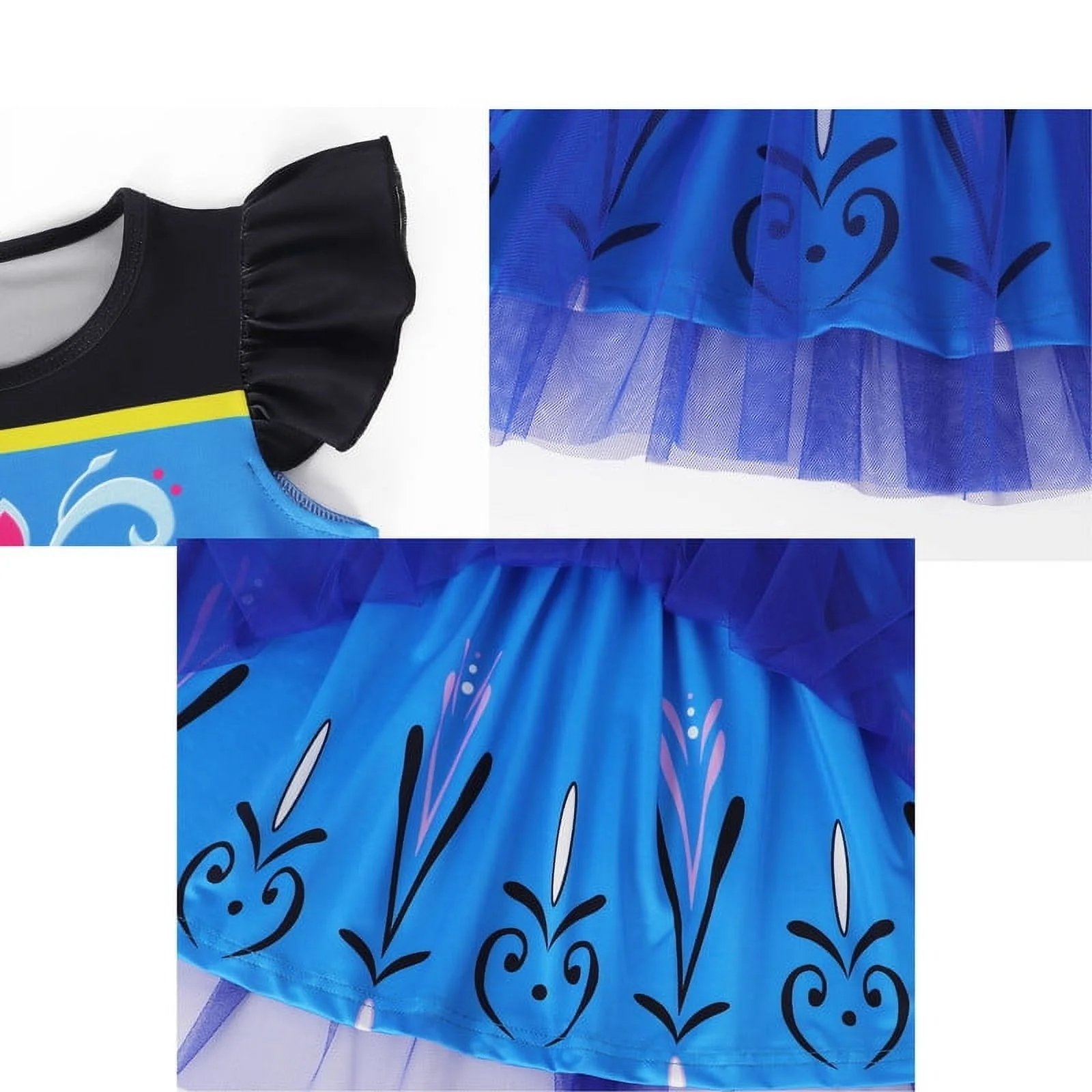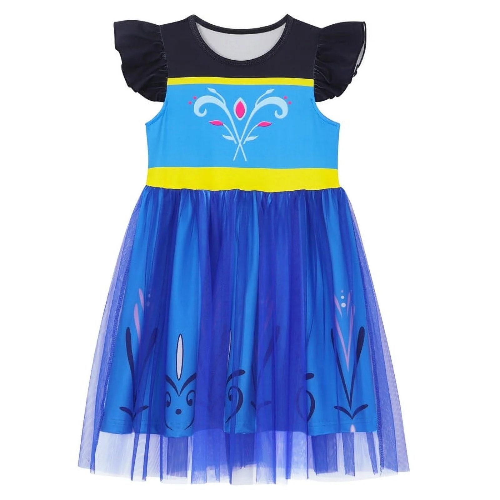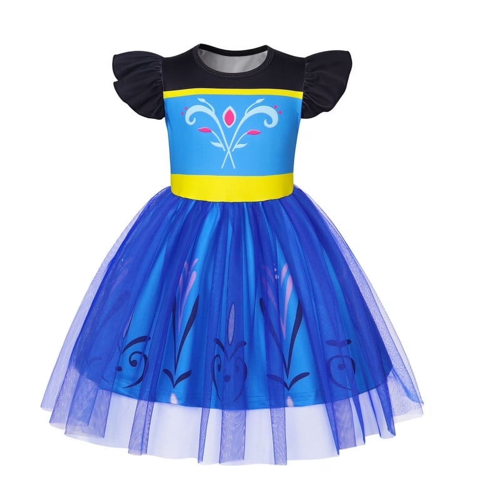 Benylion Girls Ice Anna Princess Dress Toddler Flutter Costume Sleeve Tulle Role Play & Birthday Parties Outfit for 5-6 Years