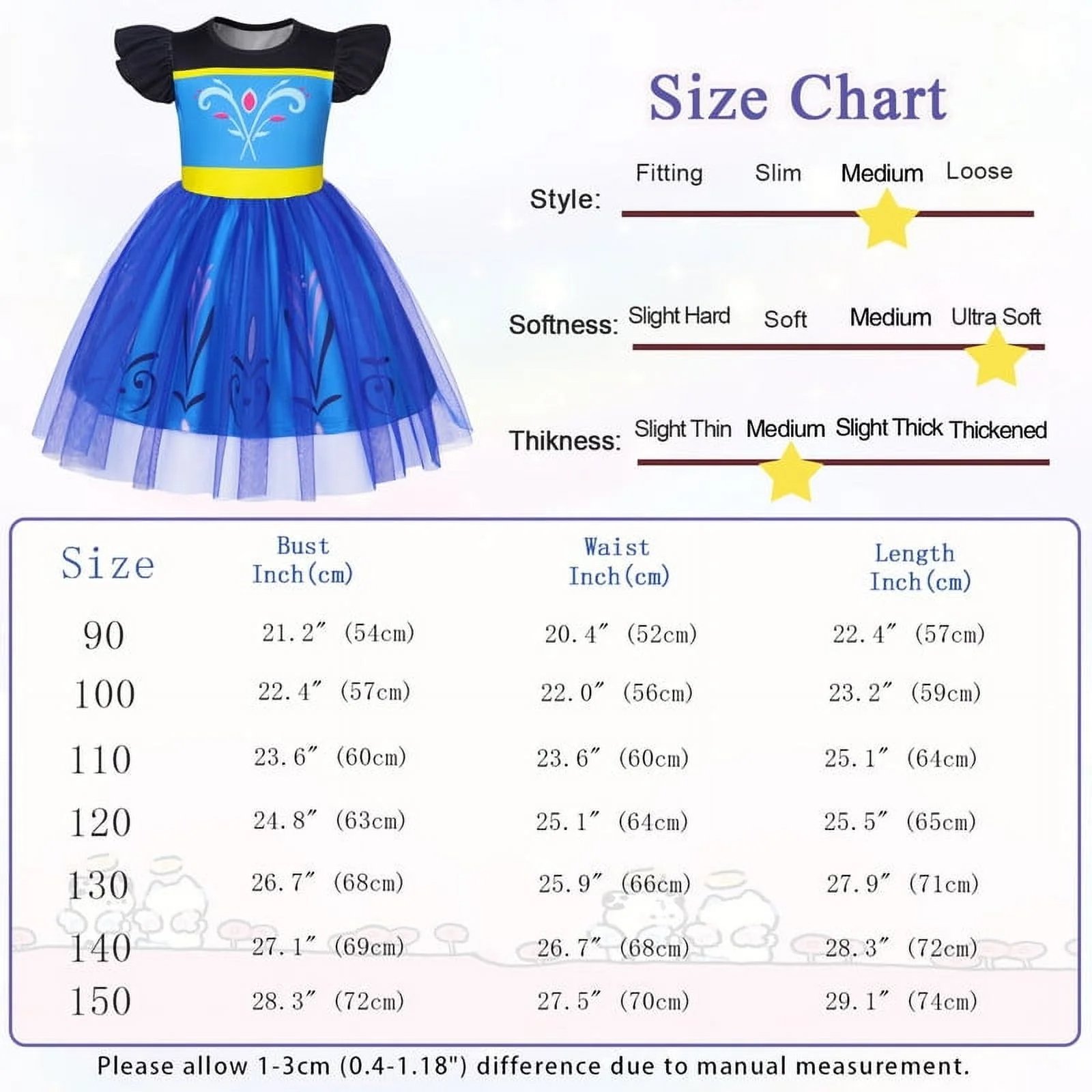 成为第一个“Benylion Girls Ice Anna Princess Dress Toddler Flutter Costume Sleeve Tulle Role Play & Birthday Parties Outfit for 5-6 Years” 的评价者