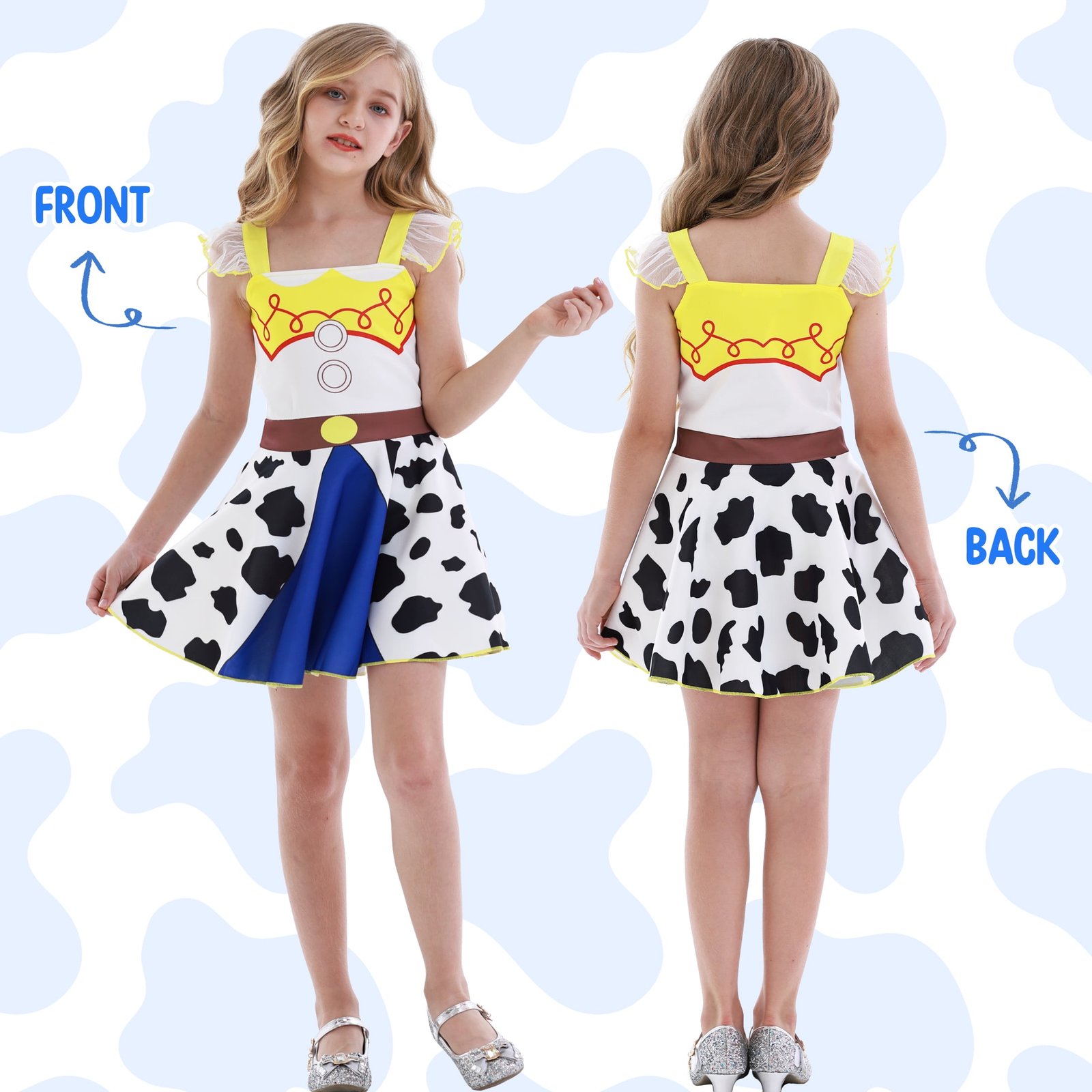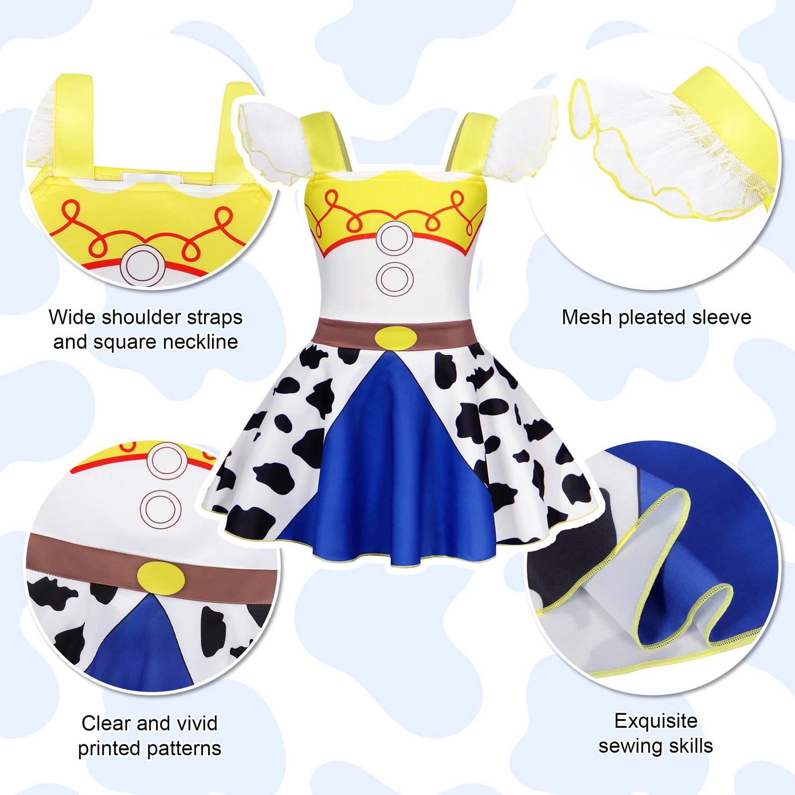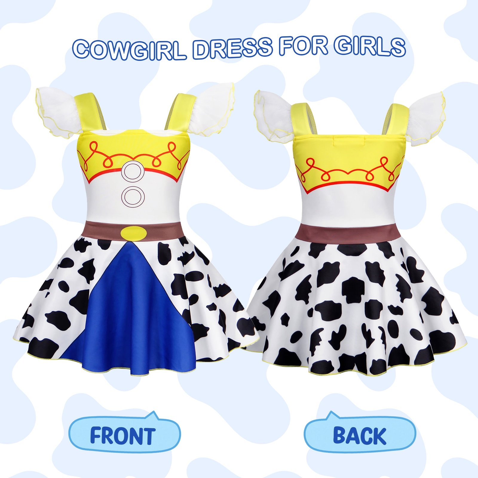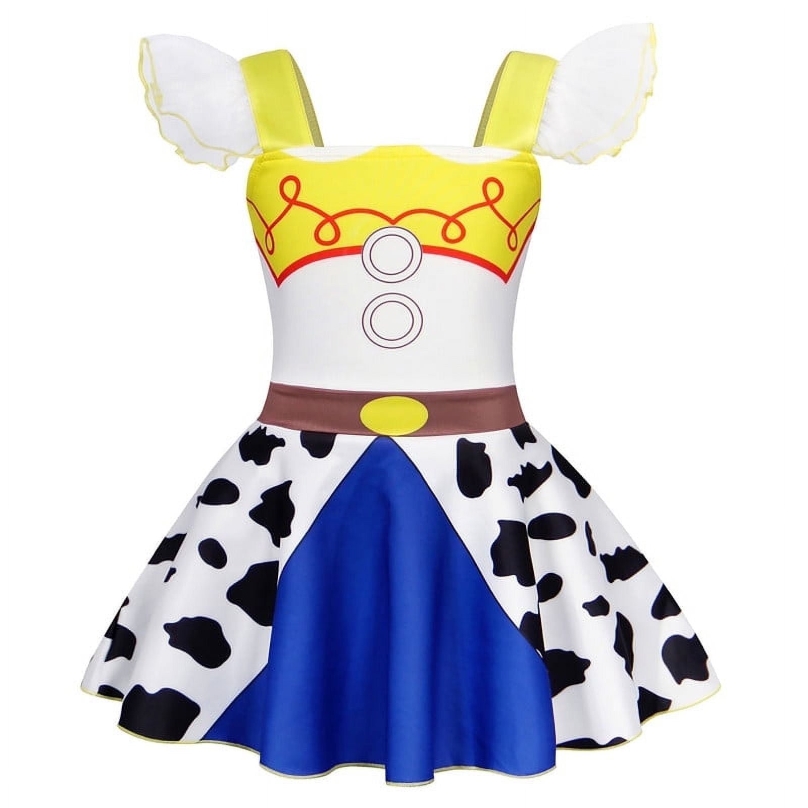 Benylion Girls Jessie Costume Dress – Cowgirl Princess Party Outfit with Lace Ruffle Sleeves for Toddler Kids 5-6 Years, Birthday Cosplay & Sleepwear Nightgown