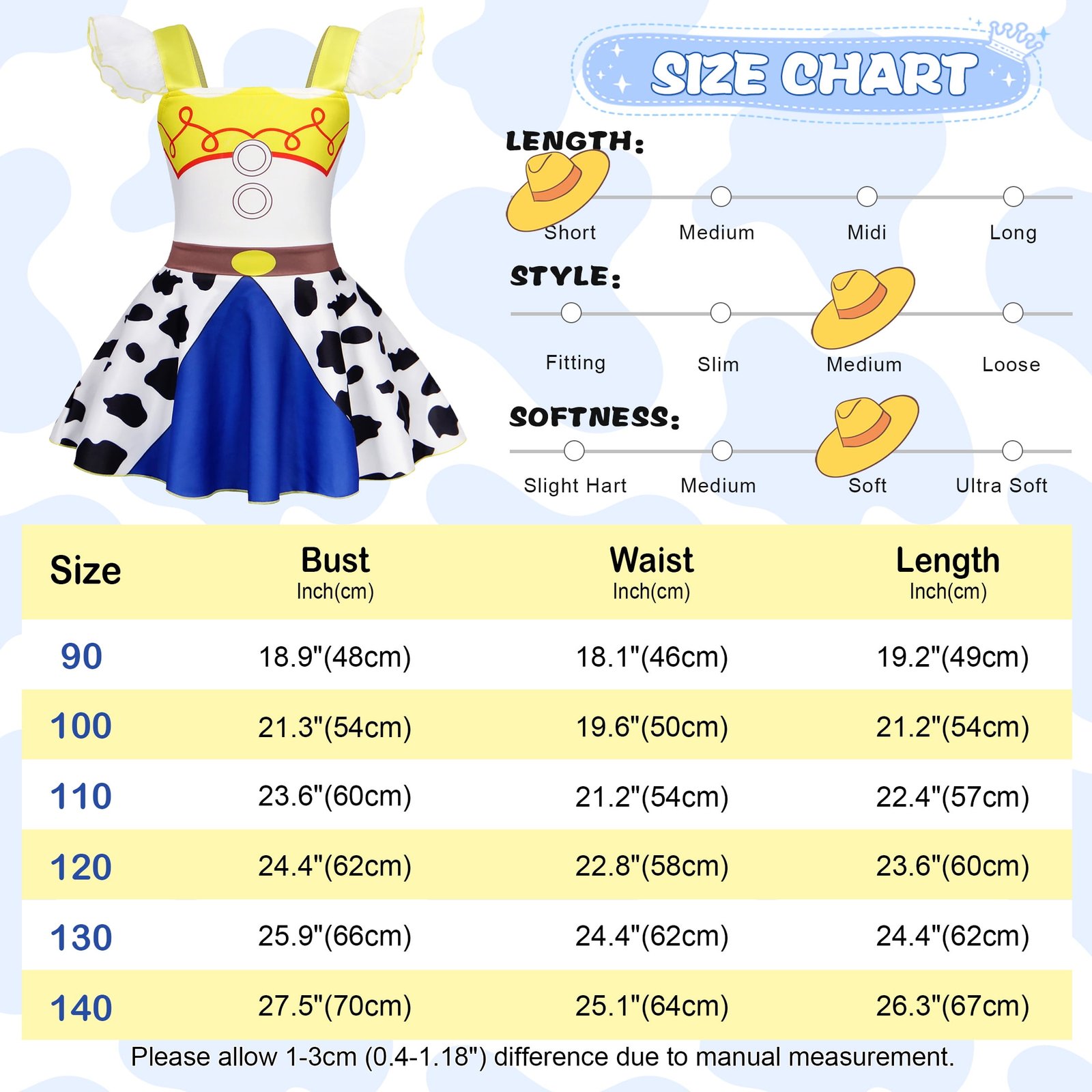 成为第一个“Benylion Girls Jessie Costume Dress – Cowgirl Princess Party Outfit with Lace Ruffle Sleeves for Toddler Kids 5-6 Years, Birthday Cosplay & Sleepwear Nightgown” 的评价者