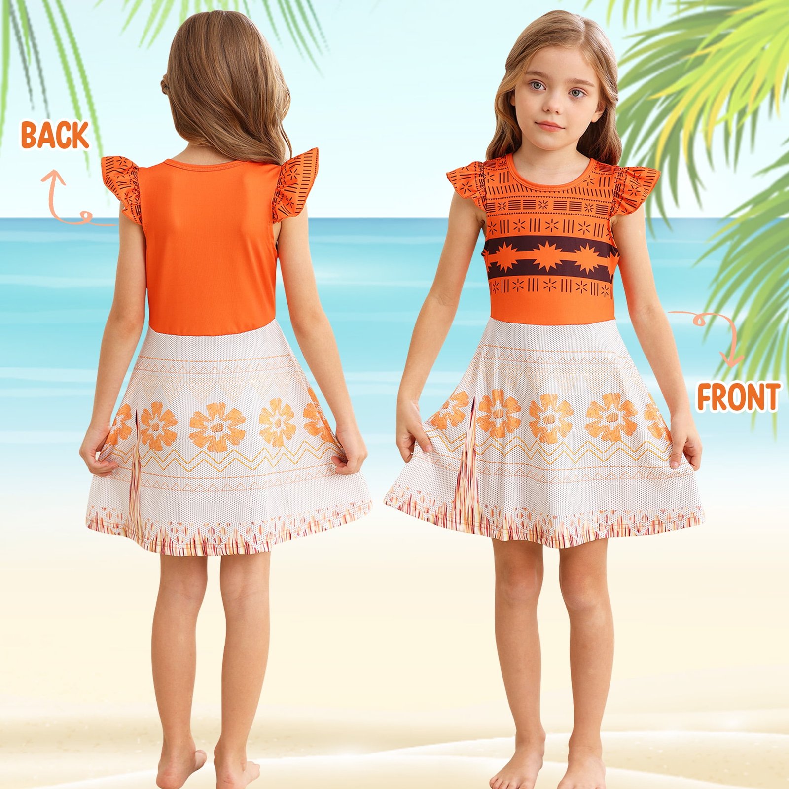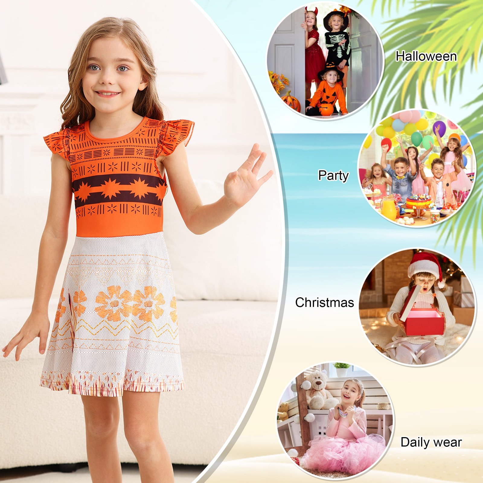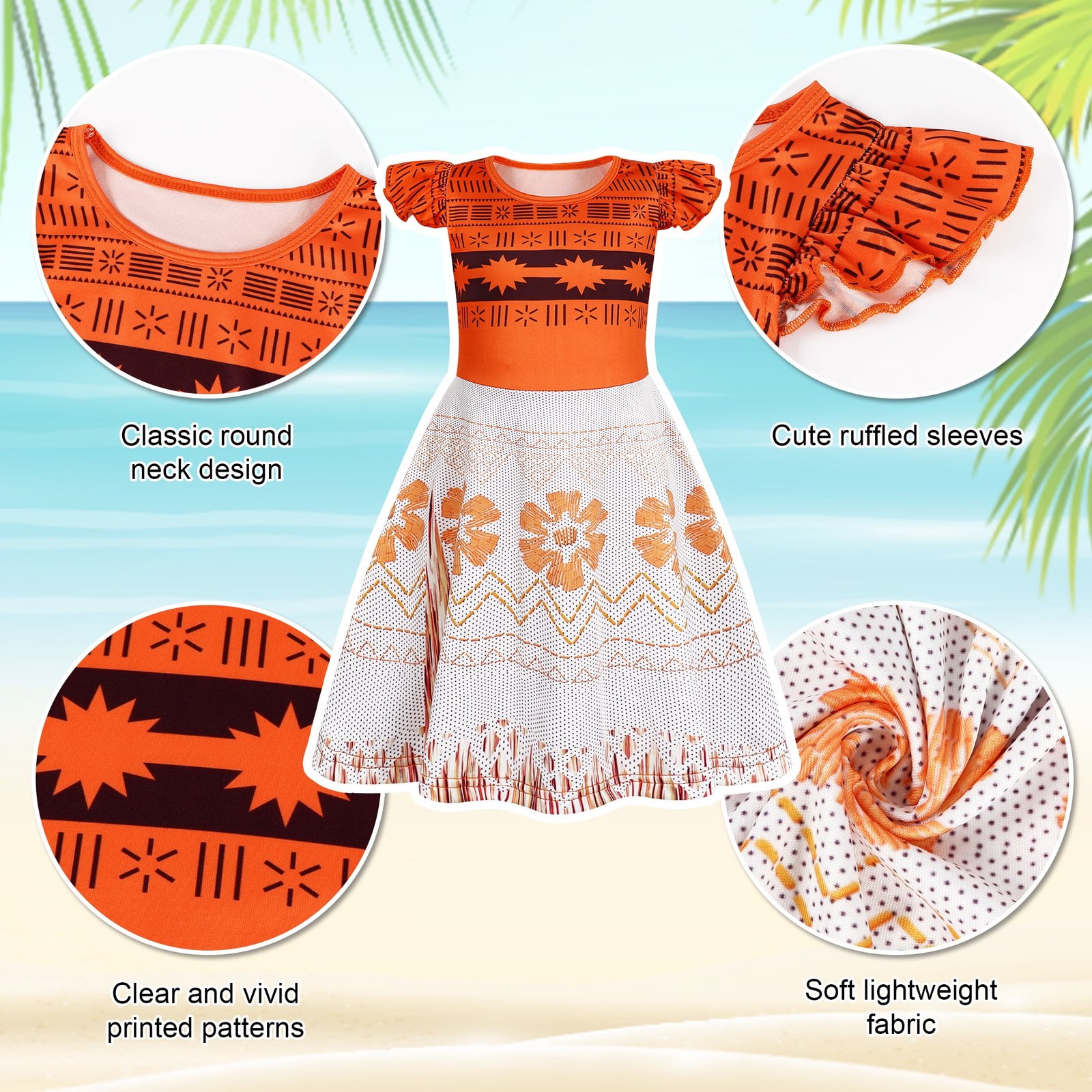 Benylion Girls Moana Costume Princess Dress Pajamas Nightgowns for Toddler Kids Sleepwear Flutter Short Sleeves Nightie Dress Outfit Outfit 5-6 Years