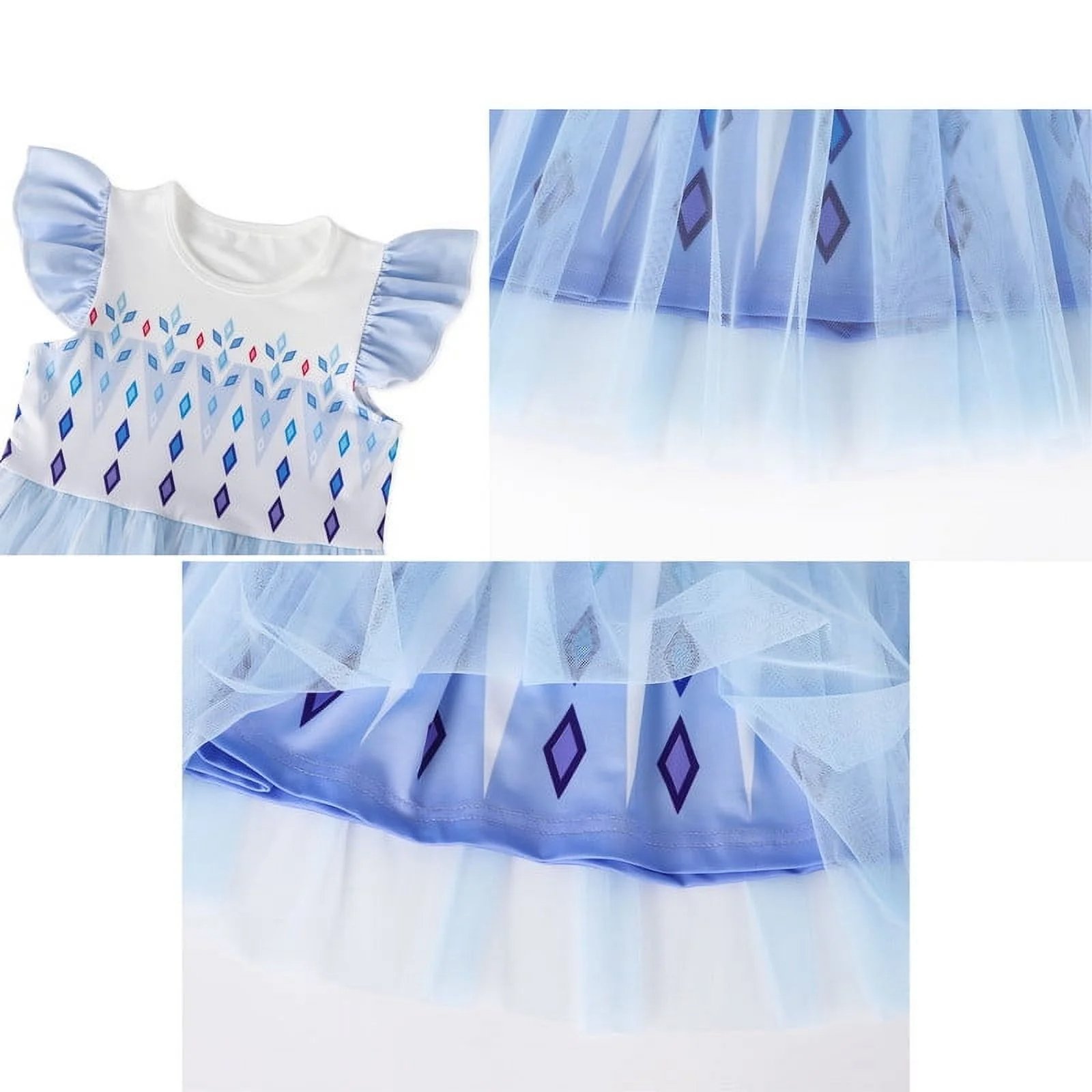 Benylion Girls Princess Costume Dress Toddler Kids Short Flutter Sleeve Tulle Dress up Cosplay Theme Party Outfit for 5-6 Years