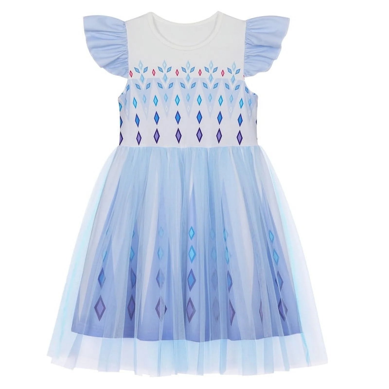 Benylion Girl’s Ice Princess Short Sleeve Dress Printed Casual Swing Twirl Skirt For Holiday Theme Party Outfits for 5-6 Years