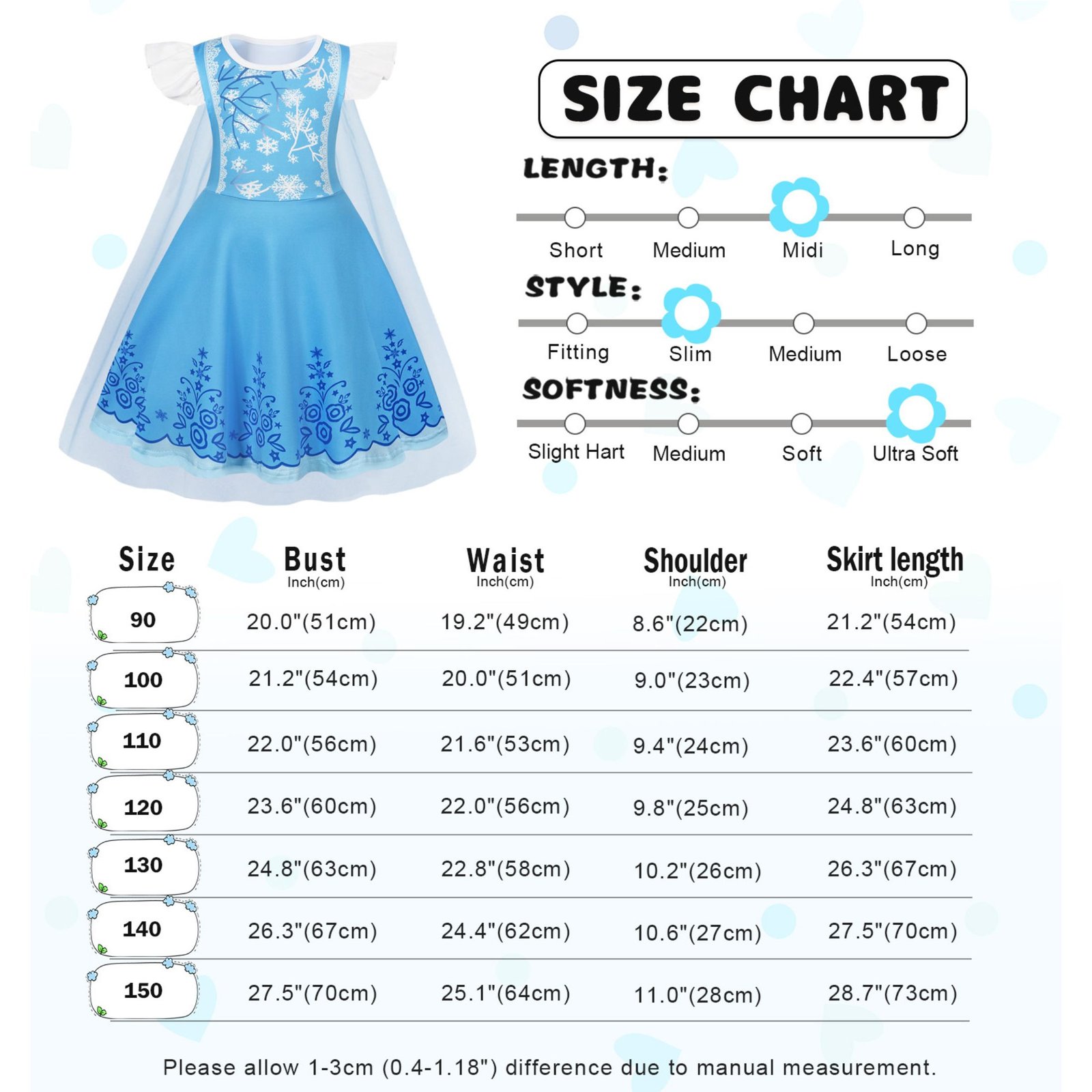 - SIZE: There are several sizes available (90, 100, 110, 120, 130, 140, 150), please choose the right size for you according to the size chart, due to manual measurement, the size may have some error!