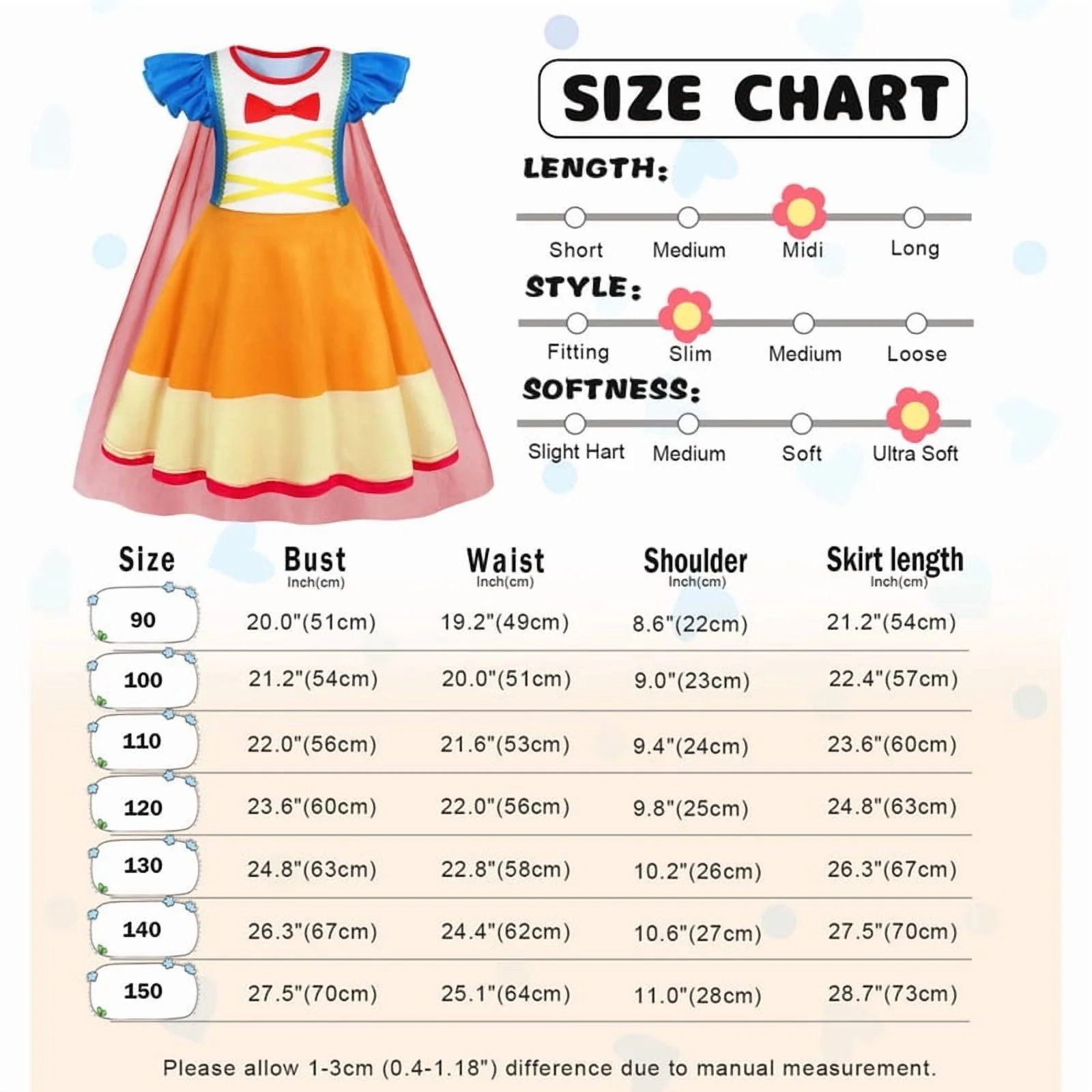 • ENCHANTING DESIGN: Inspired by beloved princess characters and perfect for masquerade and dress up, this enchanting princess dress up dress will make your baby’s dreams come true and suitable for any special occasion, this dress will make every moment magical. It is made of high quality, soft fabric that ensures maximum comfort while maintaining vibrant colors even after multiple washes.
