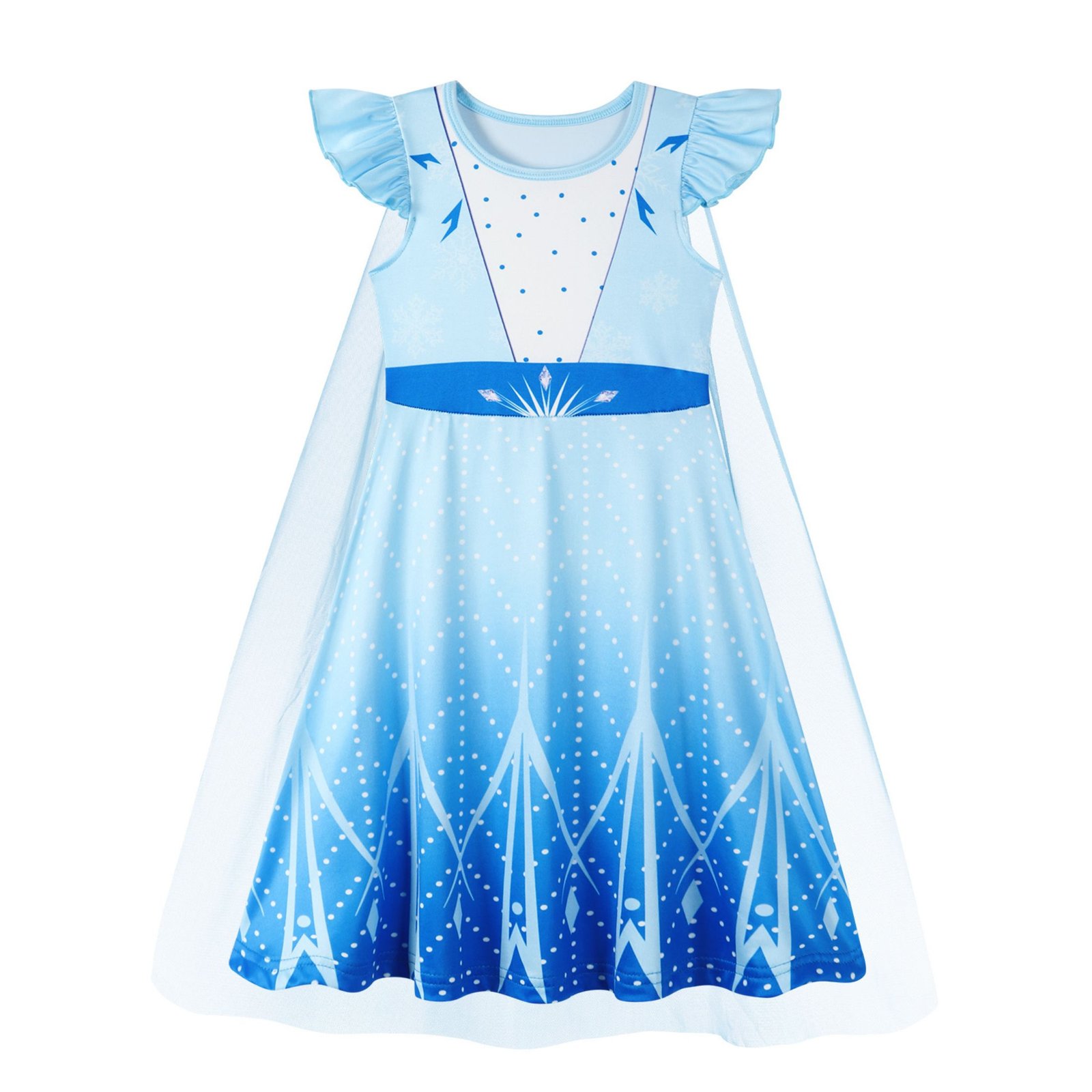 Benylion Princess Ice Dress With Cape Girls Birthday Party Cosplay Costume Toddler Ruffle Sleeve Fancy Outfit for 2-3 Years
