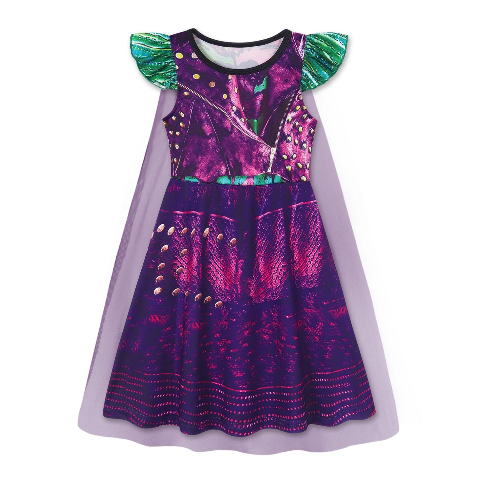 - Design: The girls’ Mal princess dress features short, flowing sleeves, a round neckline, and an A-line skirt paired with multiple layers of mesh tulle. The pullover design makes it easy to put on and take off. Vibrant 3D-printed patterns and bright colors immerse you in the charm of different princess characters.
