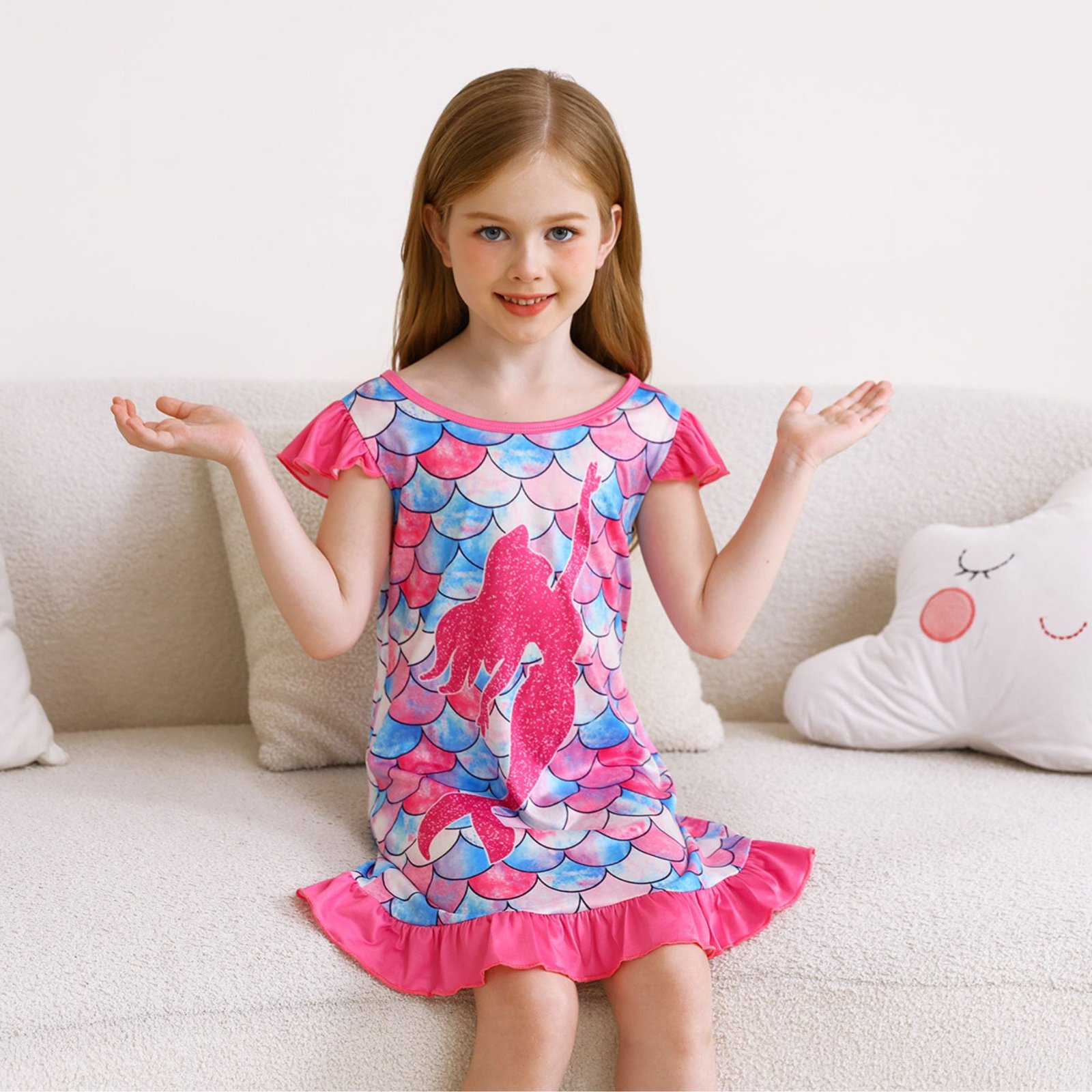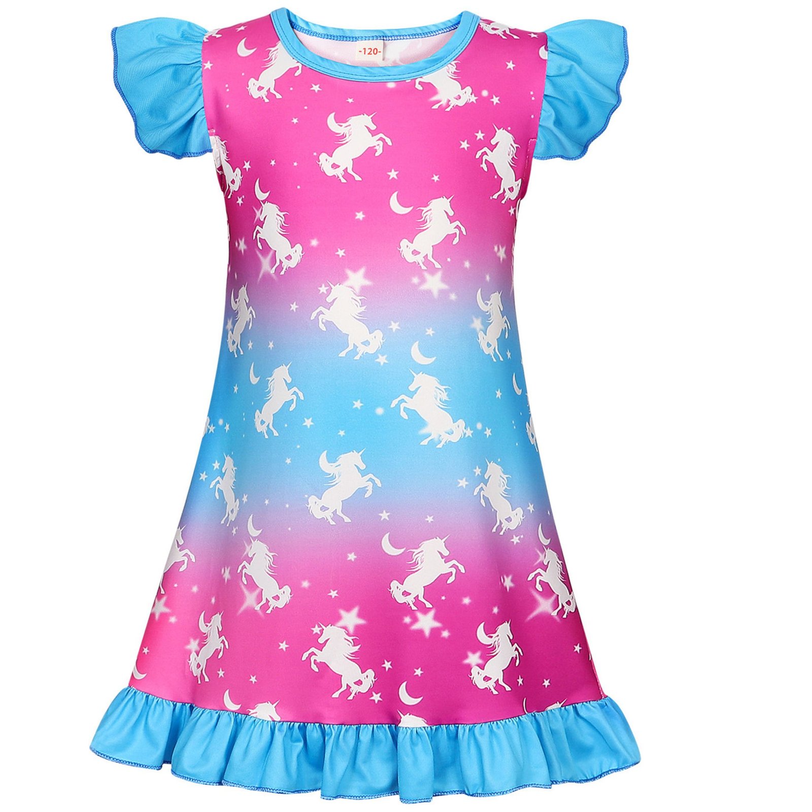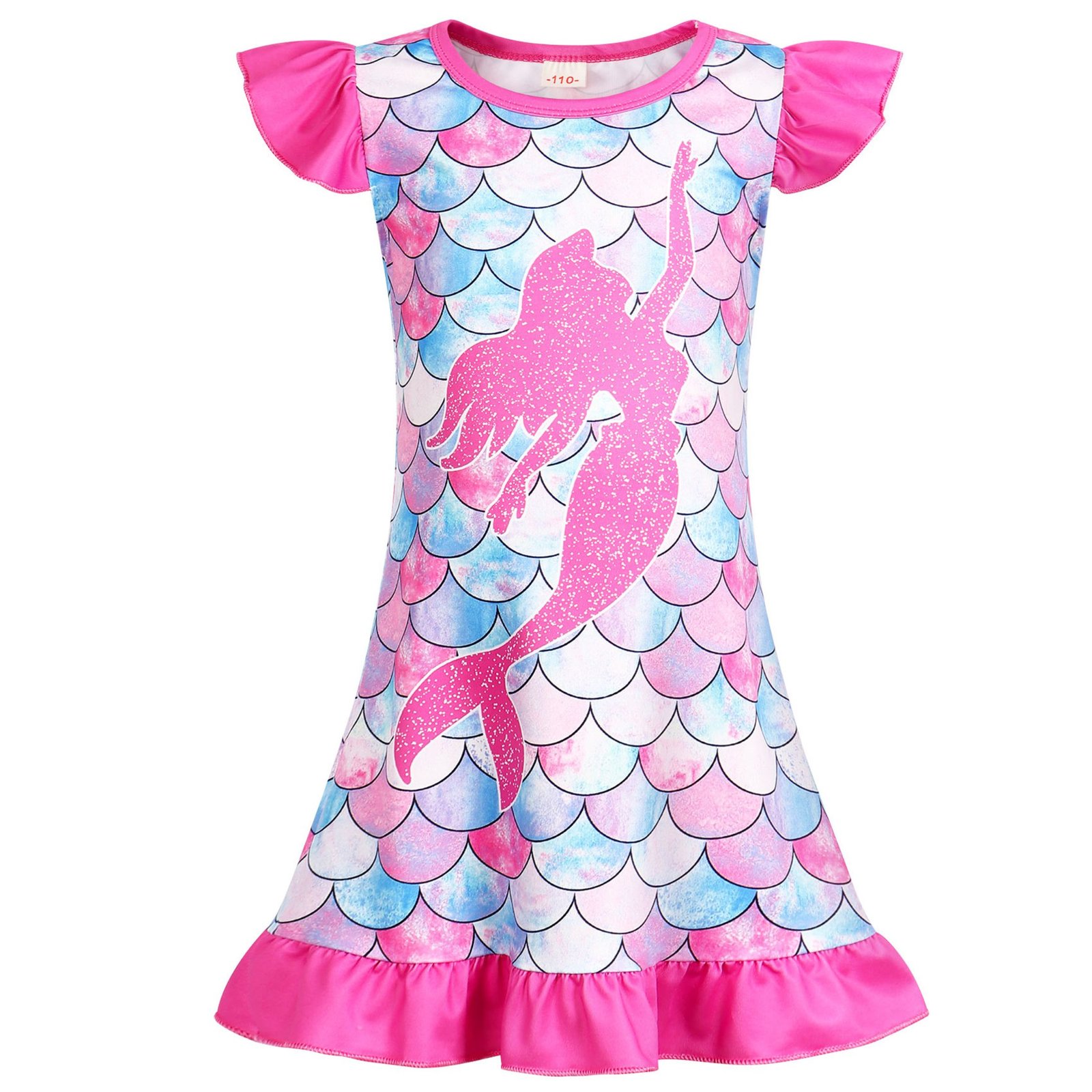 Jurebecia 2 Pcs Summer Girl Unicorns Nightgown Mermaids Cartoon Pajamas Dress for Kids Teenager Night Dress Baby Nightdress Cute Children Clothing 3-4 Years 110 CM