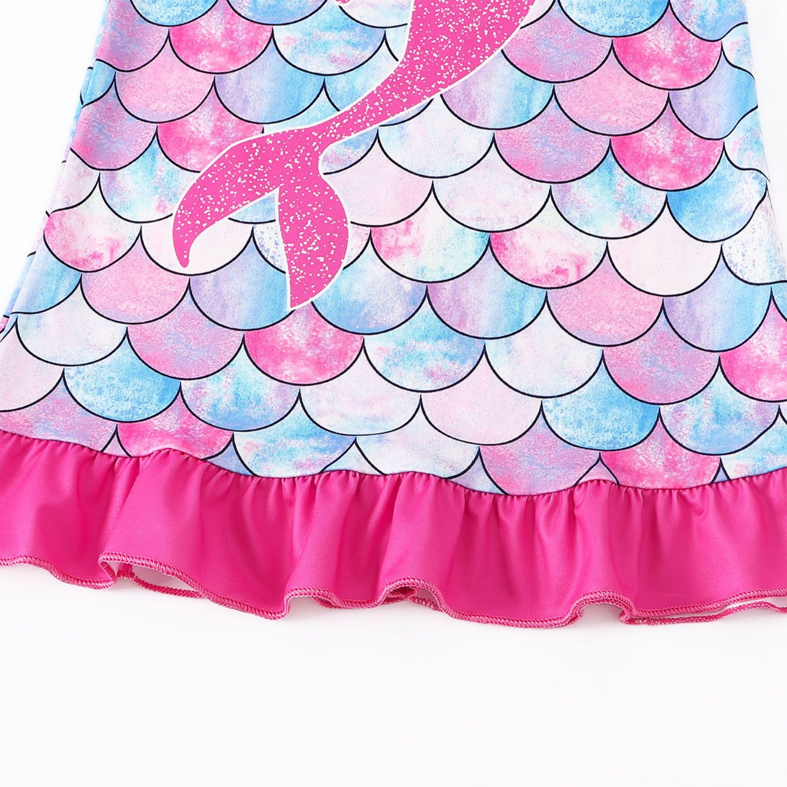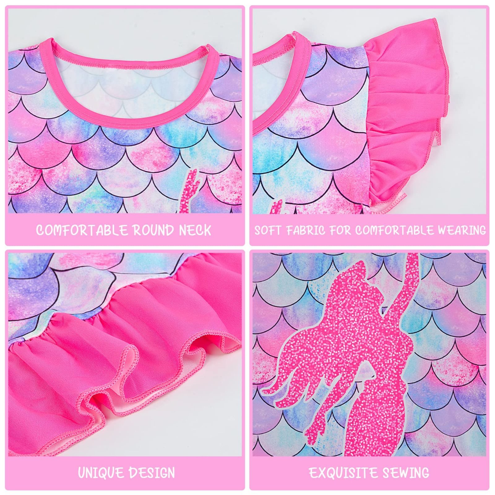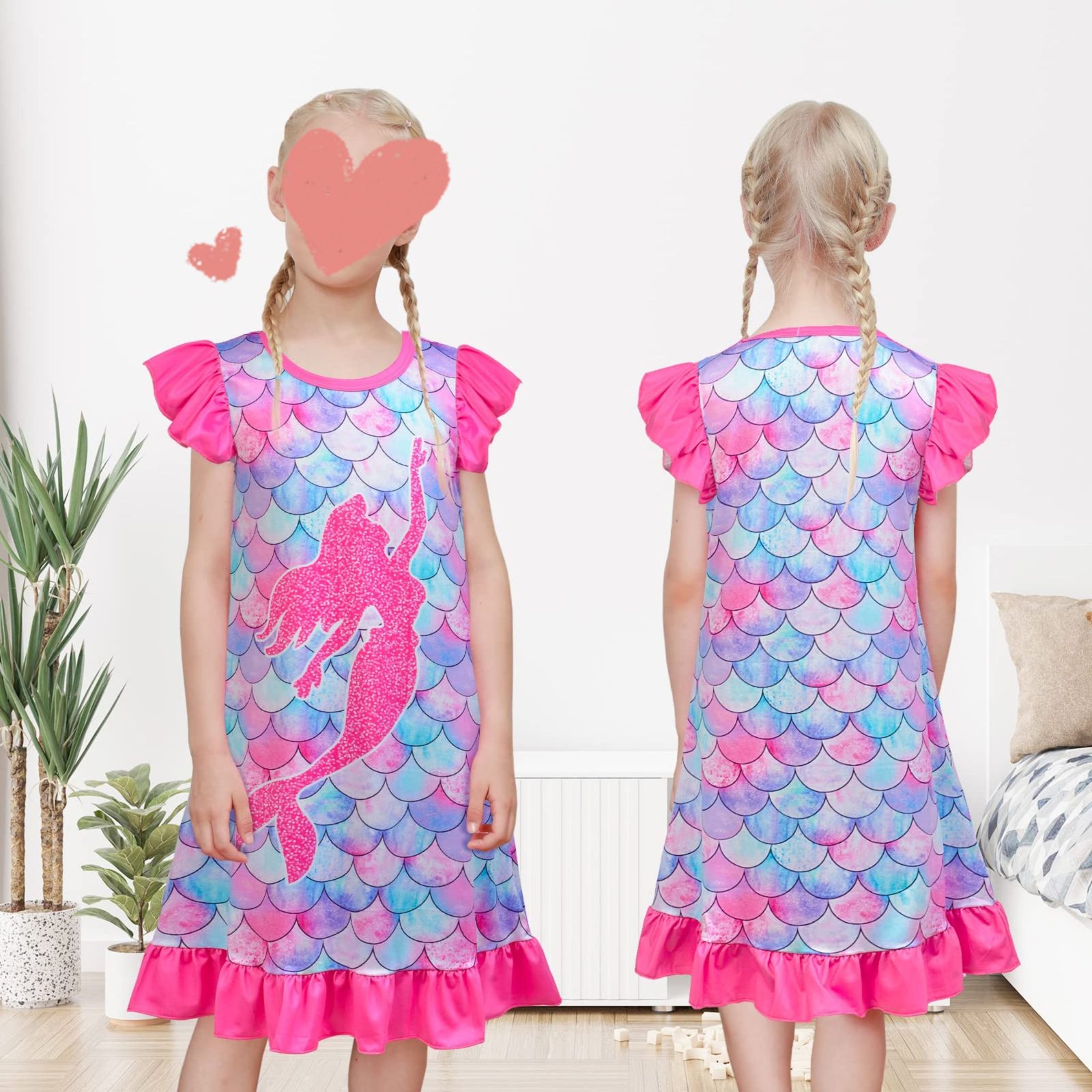 ★The fabirc for Mermaid Nightshirt: Made of high quality milk silk and spandex, ultra soft material,more skin friendly and breathable, very comfortable for wearing. Our girls Mermaid pajama dress princess nightgown jammies princess nightdress girls toddler nightgowns Mermaid dress is a best gift for your litter princess.