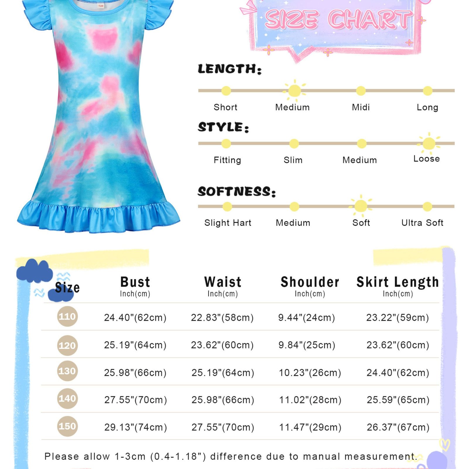 ★Night gowns for kids girls are 4 sizes optional for 4t,5t,6t,7-8 Years,9-10 Years.please check the size chart before order according to your girls height and weight.Both hand and gently machine washable,air dry.