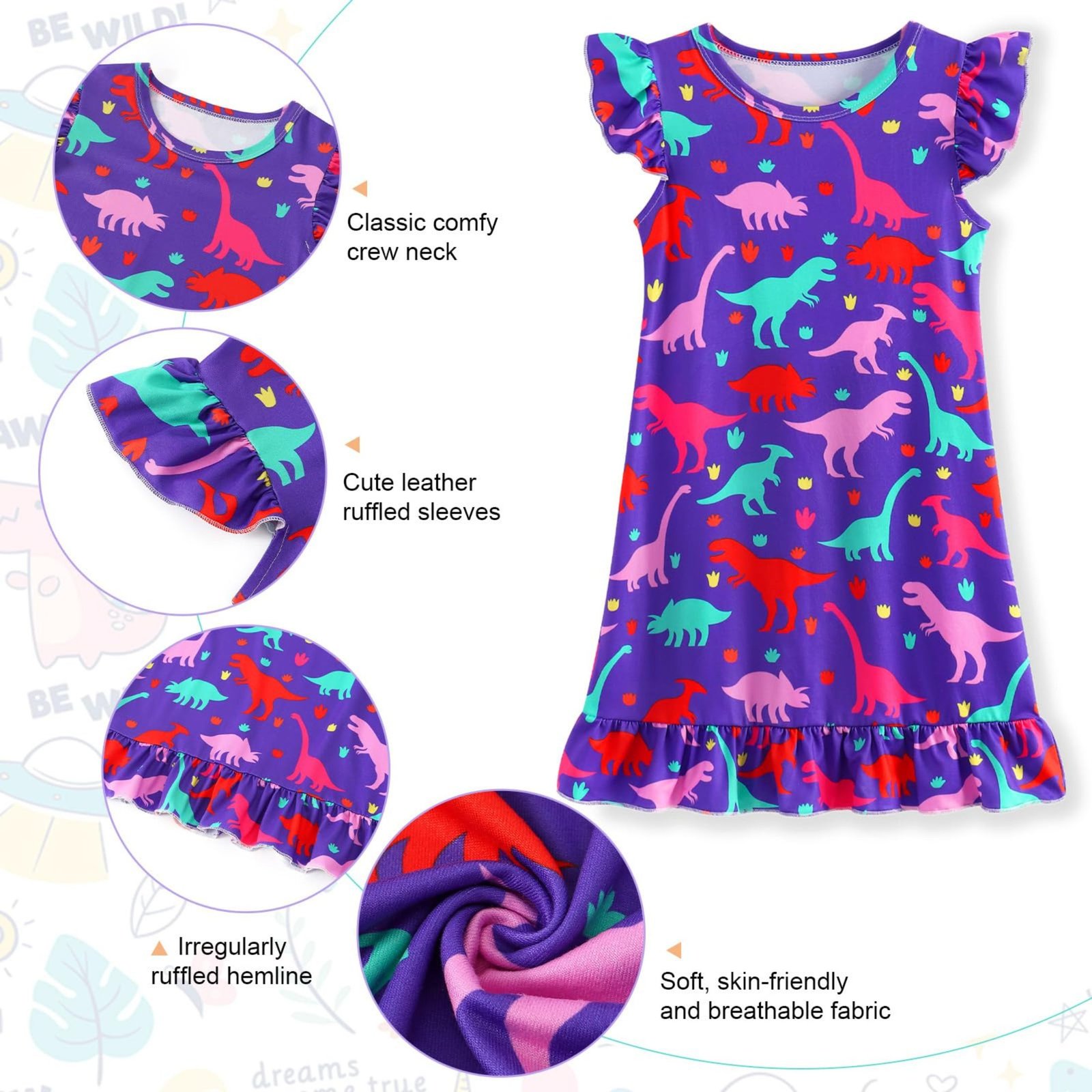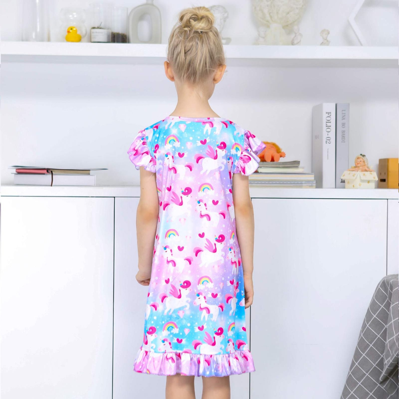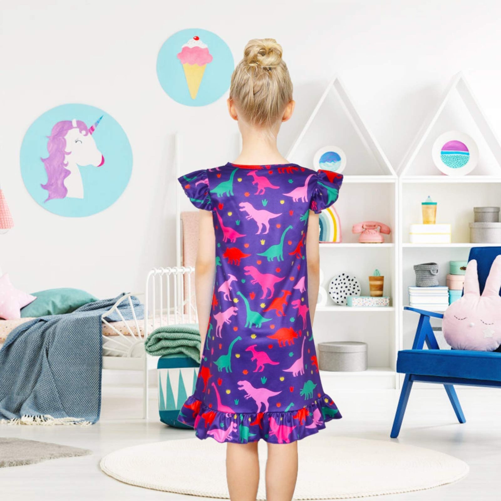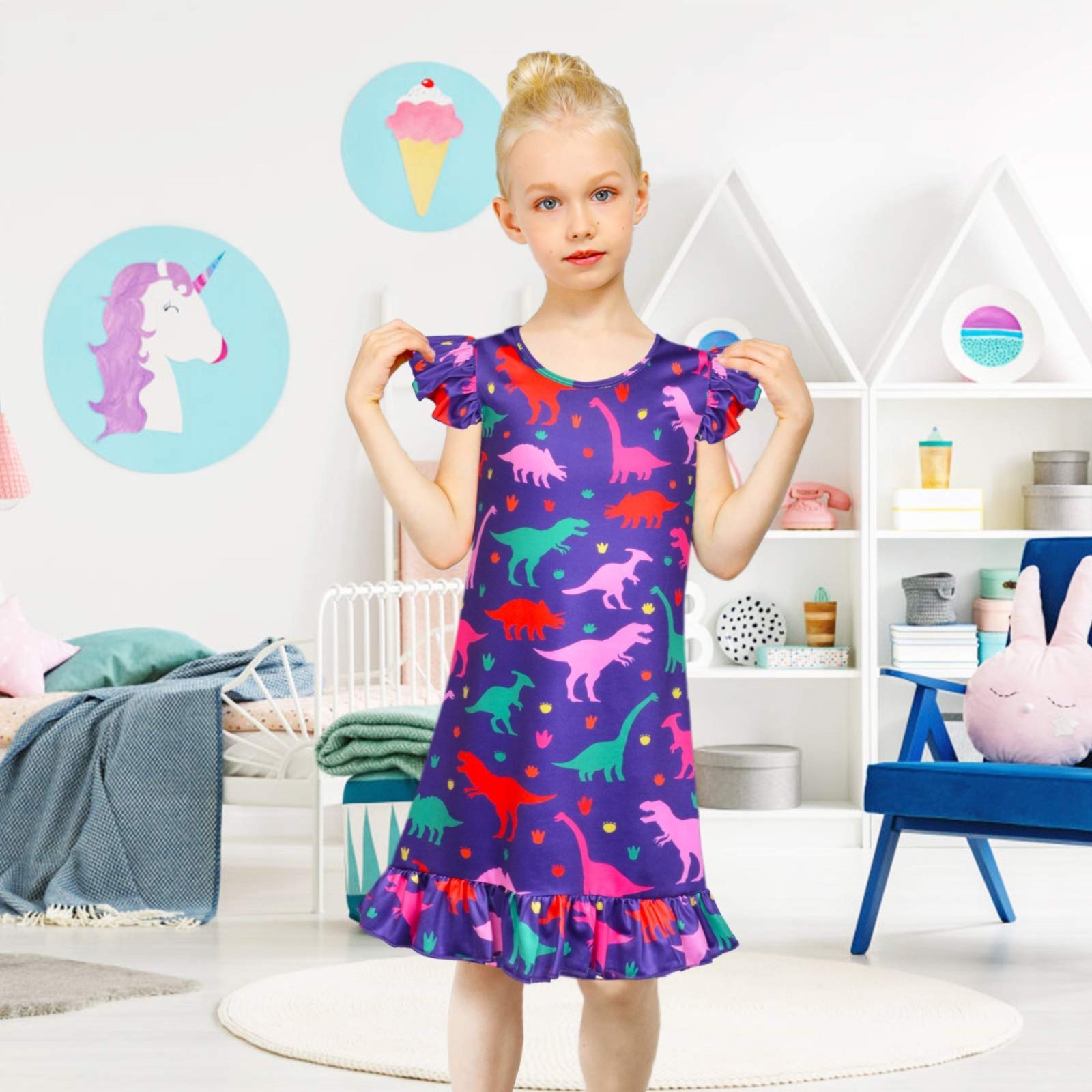 ★High Resolution Print for Sleepwear Dress :3D dye-sublimation printing make the color more vibrant and bright, looking very vivid and lifelike. You litter princess will be very love it.