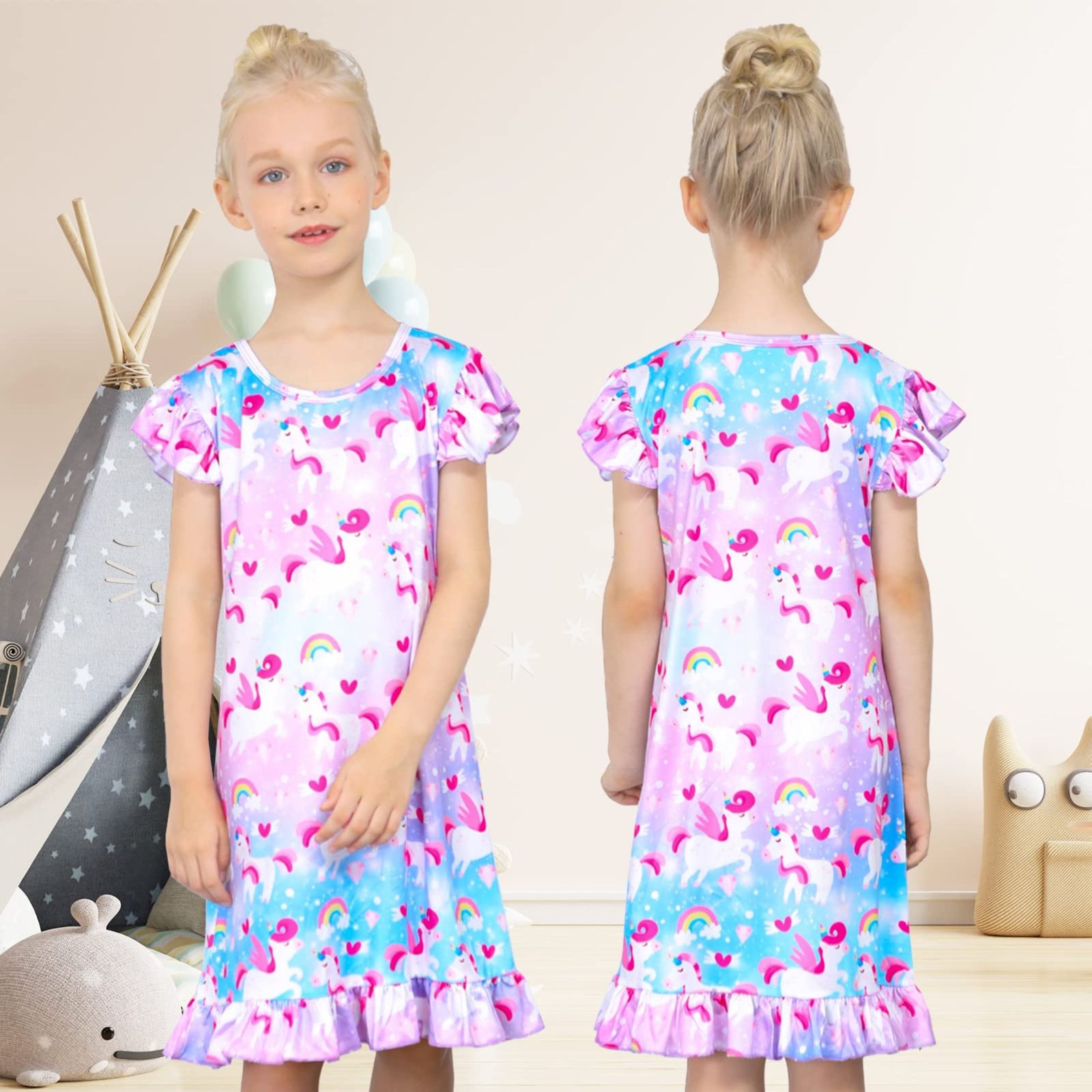 ★Occasions: The short sleeve nightwear dress is perfect for all seasons. Suitable for sleeping, casual daily wear, unicorn party or pajama party . Best choice for New Year, festivals, dance party, costume party, photo props, family gathering or other special occasions.