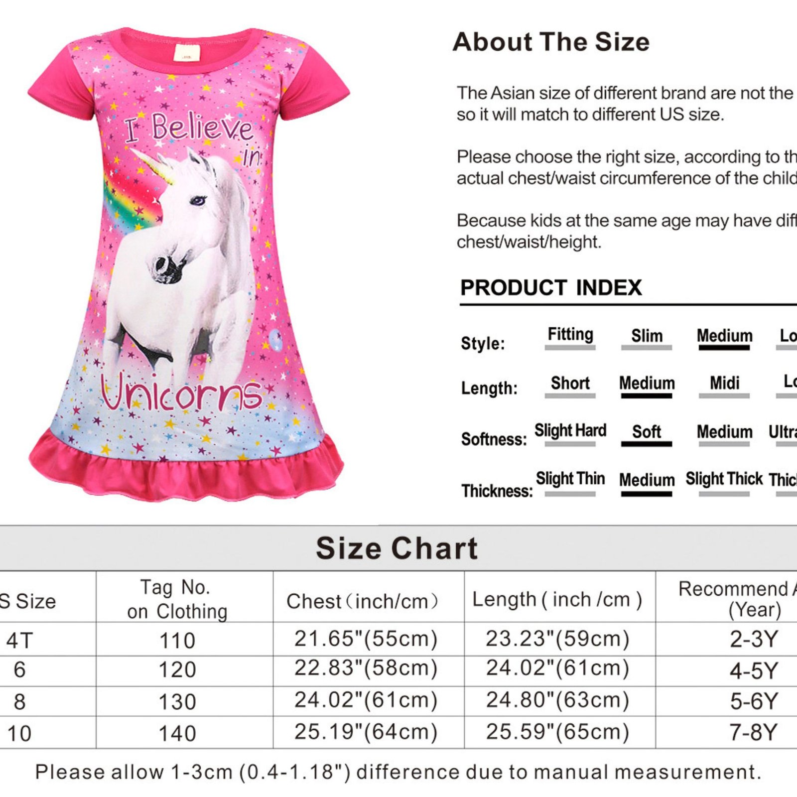 ★5 sizes, this girl cartoon nightdress is suitable for little girls 3-10 years old. Please read the size chart carefully before purchasing in order to choose the right size. Any questions, please feel free to contact us, we will solve your problem within 24 hours.