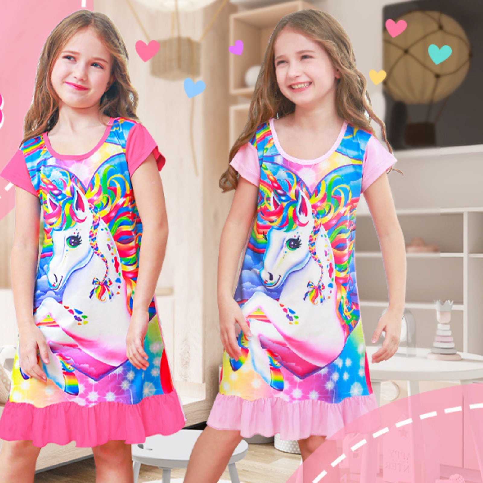 ★Occasions: Kids sleepwear nightshirt is perfect as a birthday gift for your daughter/granddaughter/niece, suitable for sleepover, loungewear, pajamas party, home wear, daily wear or birthday parties, holidays, Christmas, vacations, picnic, travel, family gathering, photography.It is comfy for sleeping.