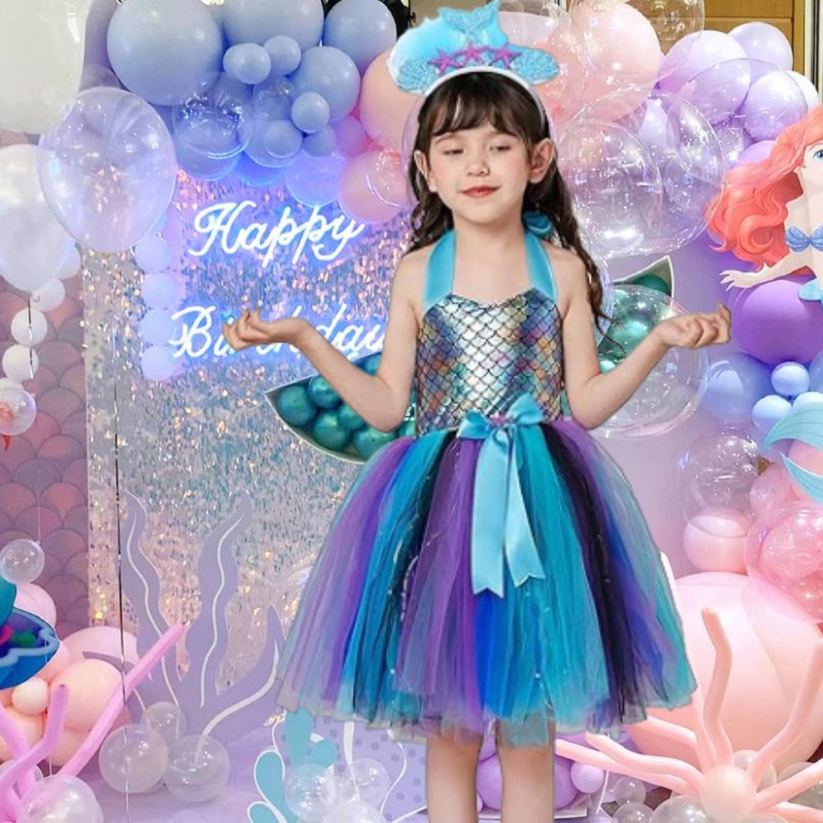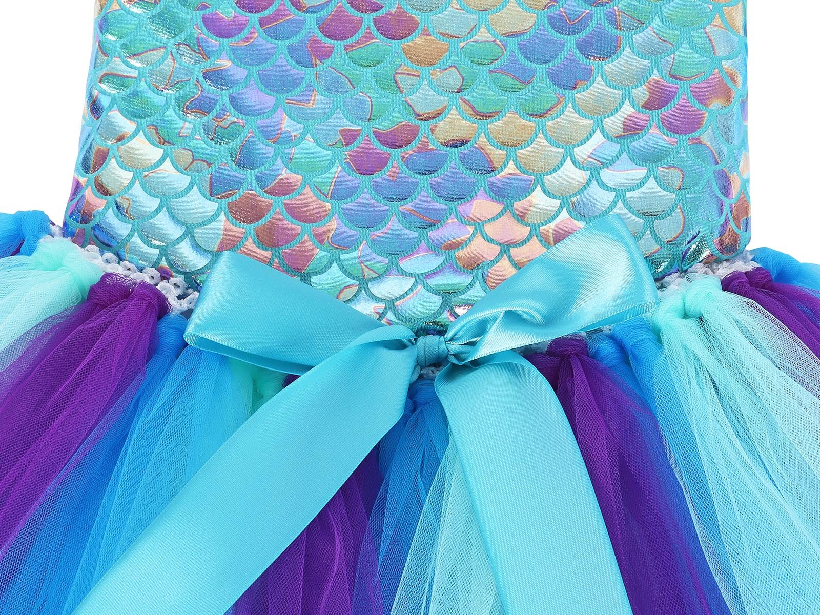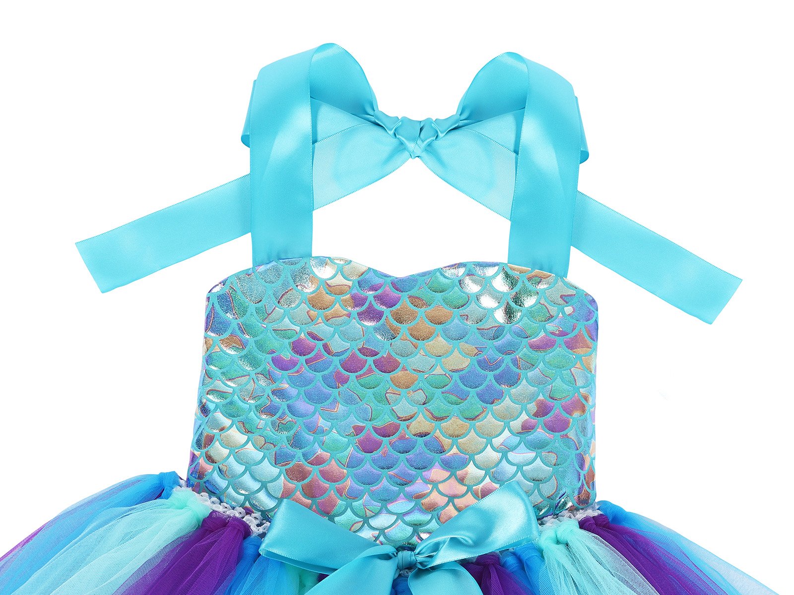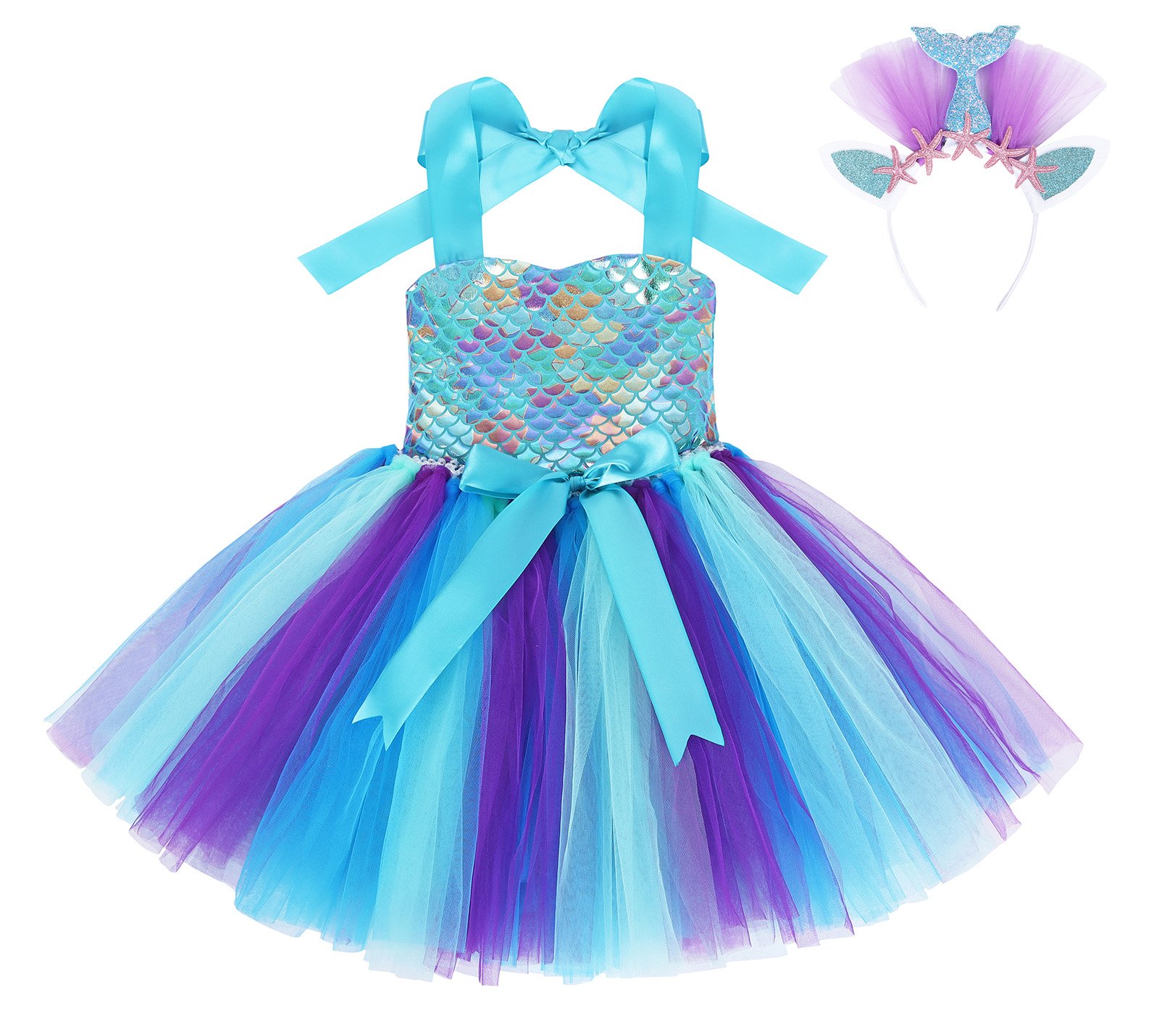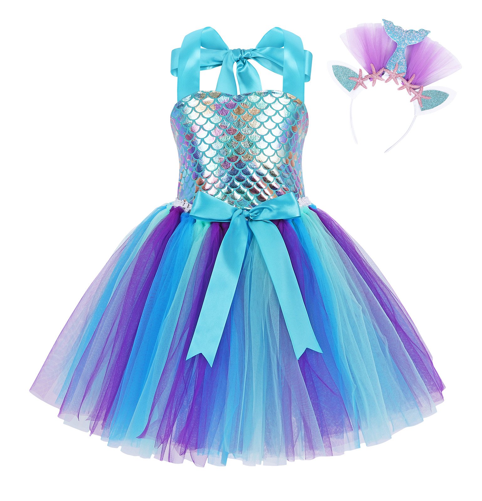 3.Unique mermaid dress design jurebecia mermaid dress was designed for those toddler girls who love the mermaid story and have dream to be a mermaid princess. The Accessories up makes this mermaid dress outstanding, colorful headband adds story to the top.Trust the little girl will be a princess at the party!