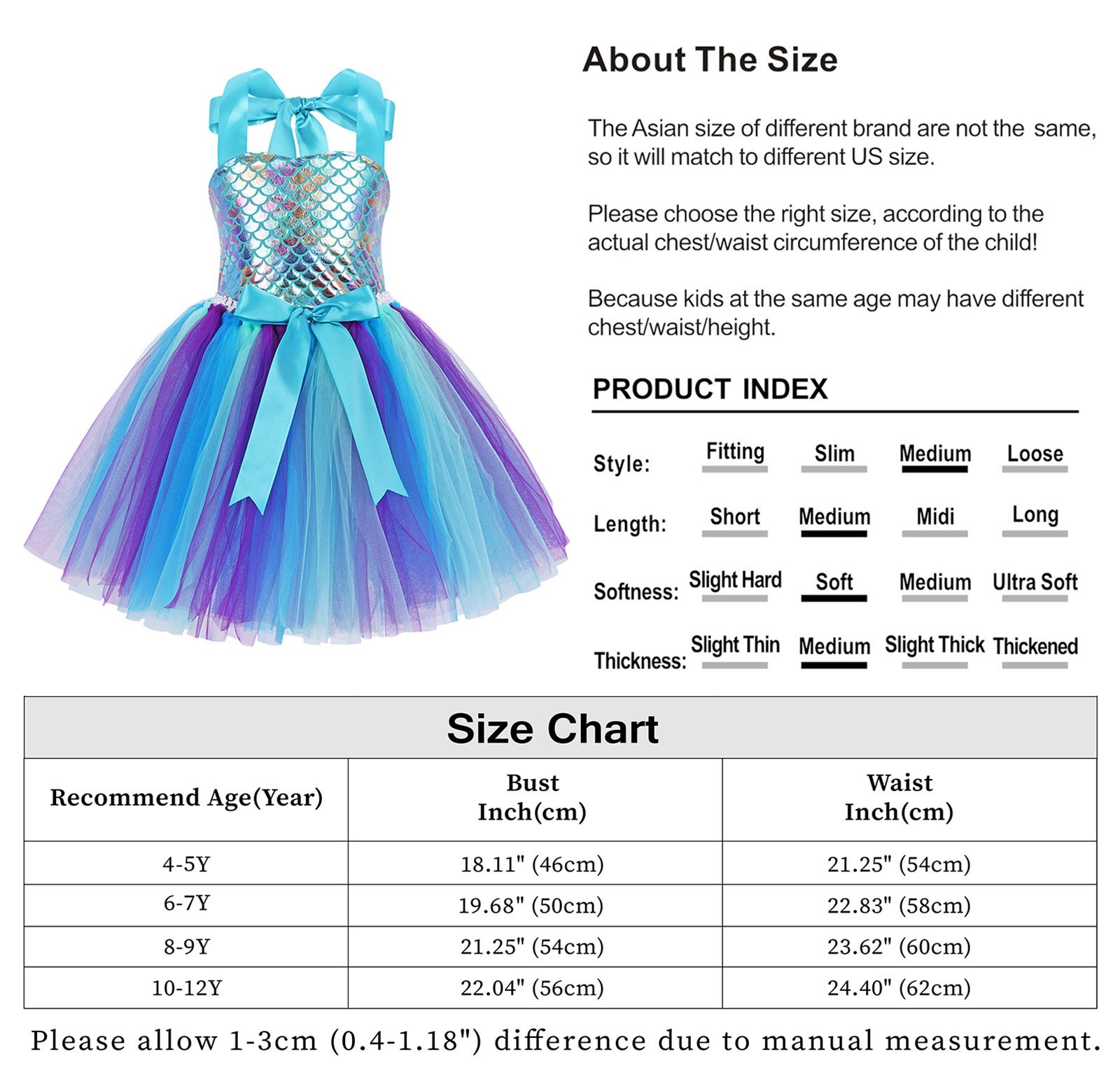 Package Including:This Mermaid Dress including 1*Mermaid dress and 1*Mermaid Headband.Every mermaid princess will like the fancy costume.
