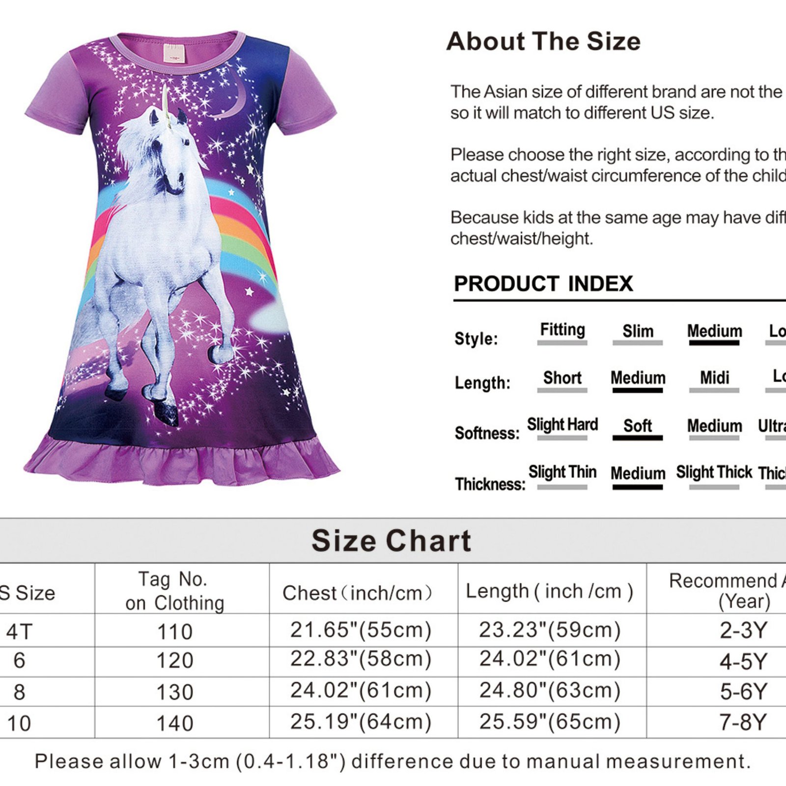★Size reference for girl summer dresses: Available Age is 4-9 Years Old, recommend age is just for your refer, Please refer size chart firstly in stead of recommend age. Check our size chart to find the size you need. All data are measured by manual measurement, so please allow a little slight deviation (1-3 cm) will be existed,1 cm = 0.39 inch