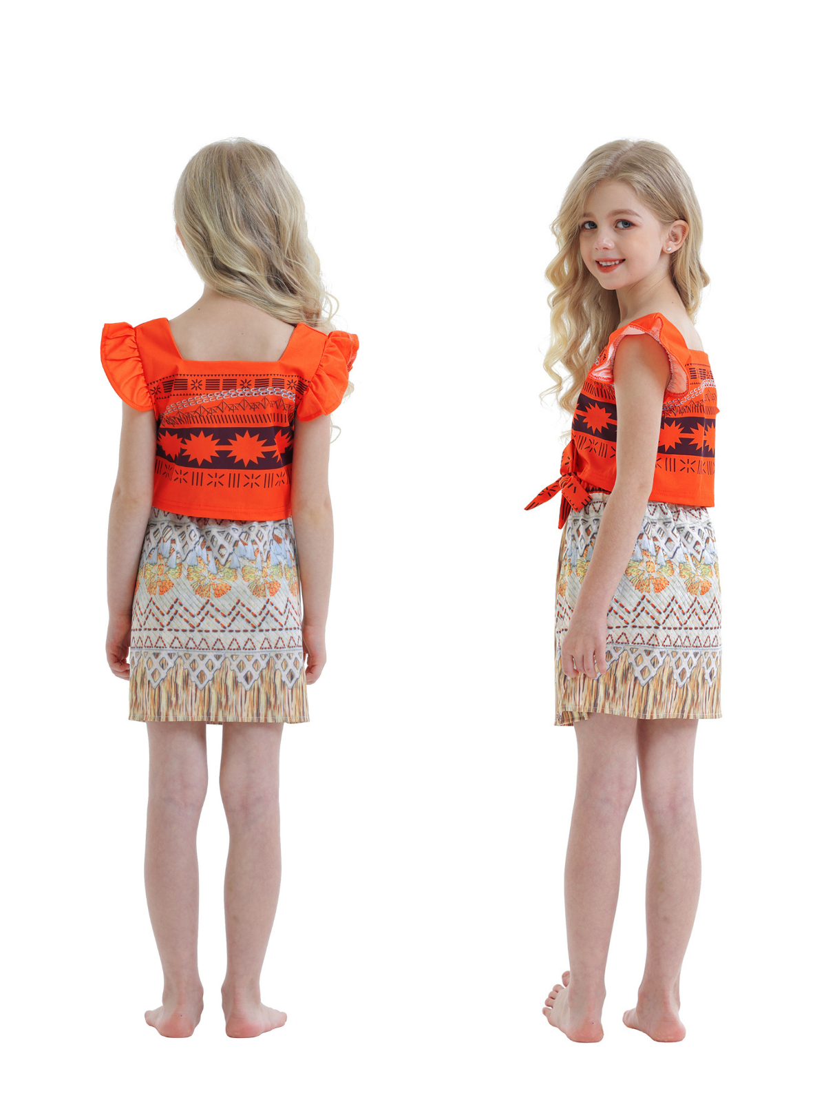 Jurebecia Princess Costume for Girls Adventure Dress Outfit Two-Pieces Crop Top Skirt Set Birthday Party Clothes Child