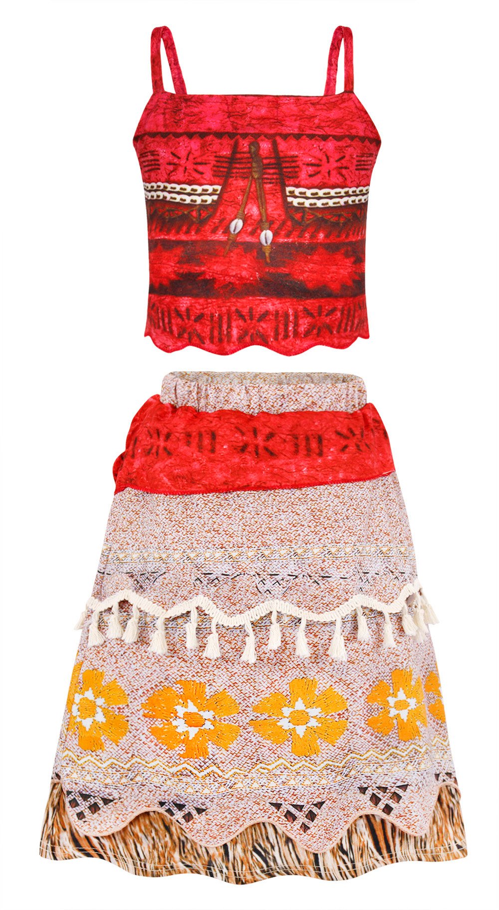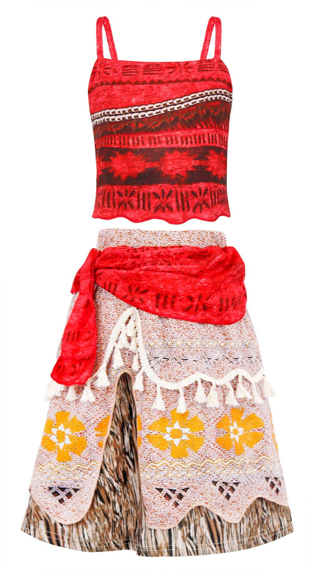 Jurebecia Princess Dress for Girls Adventure Outfit Costume Two-Pieces Crop Top Skirt Set Halloween Christmas Cosplay Clothes Child Age