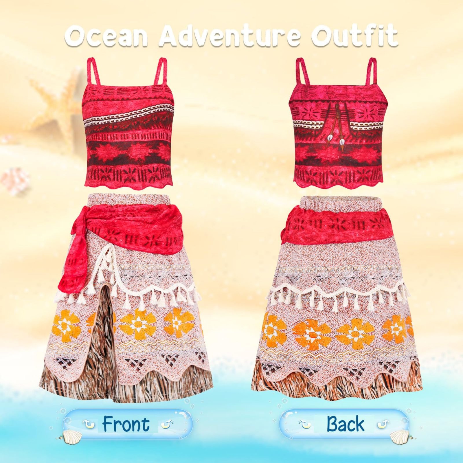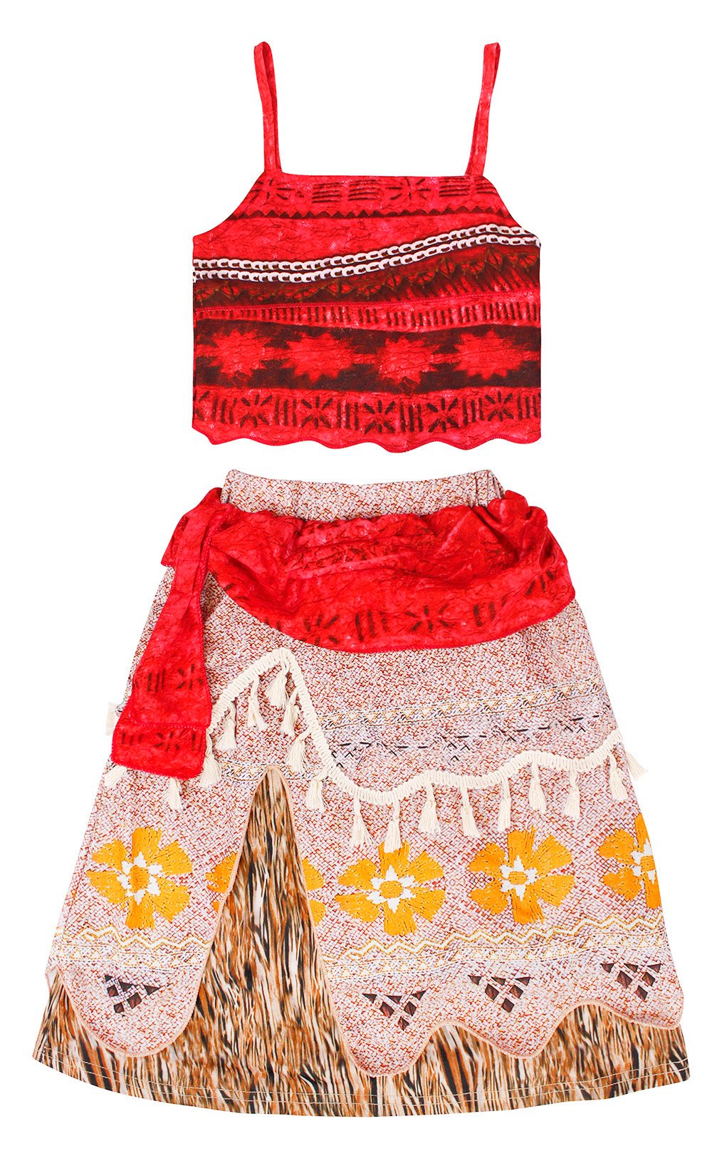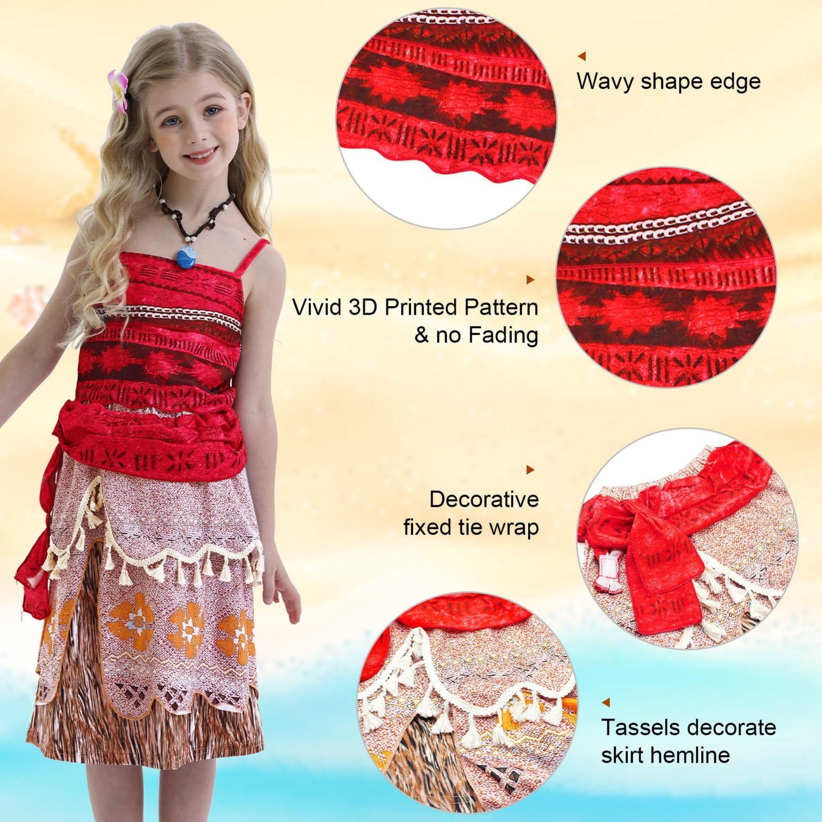 Benylion Princess Moana Dress With Cape Girls Birthday Party Cosplay Costume Toddler Ruffle Sleeve Fancy Outfit for 5-6 Years