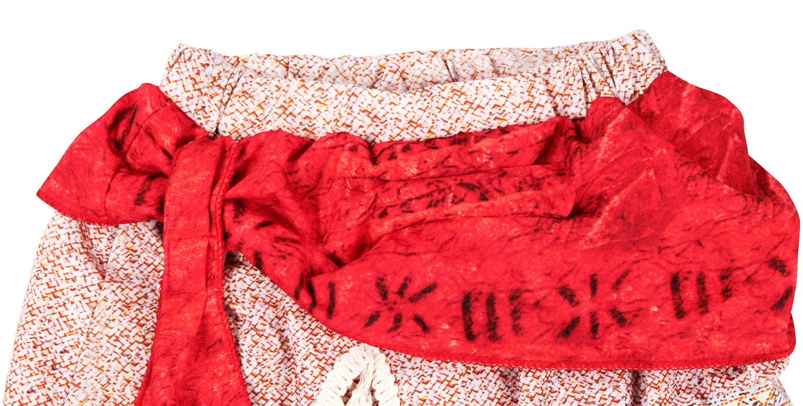 Matching flower patterned skirts with wide removeable red belt,tassel skirts overlay decorated;