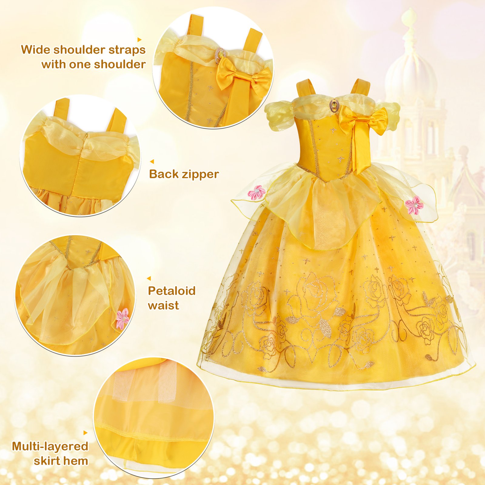 【Occasions】Perfect for disney Belle princess themed party, birthday party, Christmas, Halloween theme party,role-playing Game and daily dress up. If your girl wants to dress up as the character from the movie, this princess outfit is a good choice.