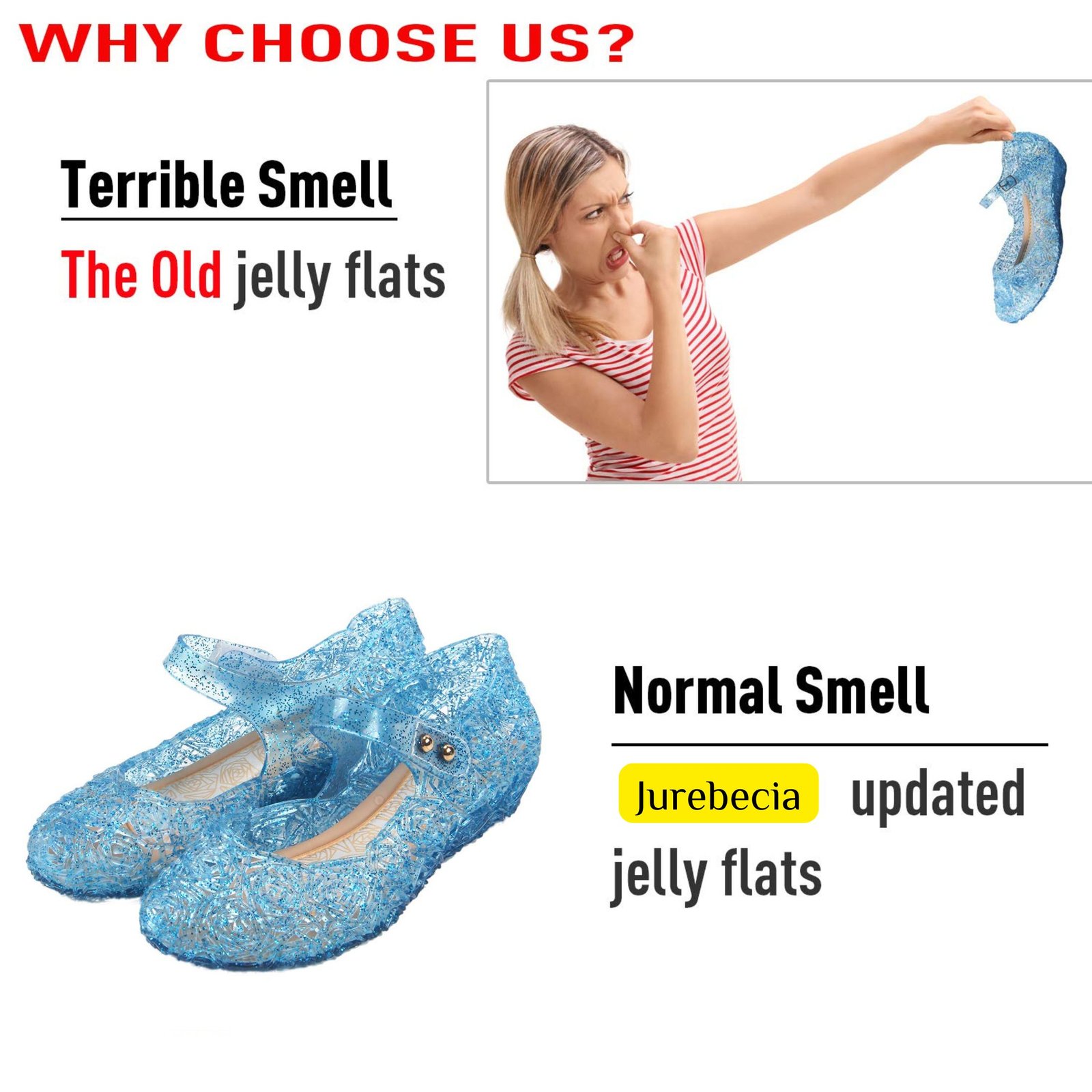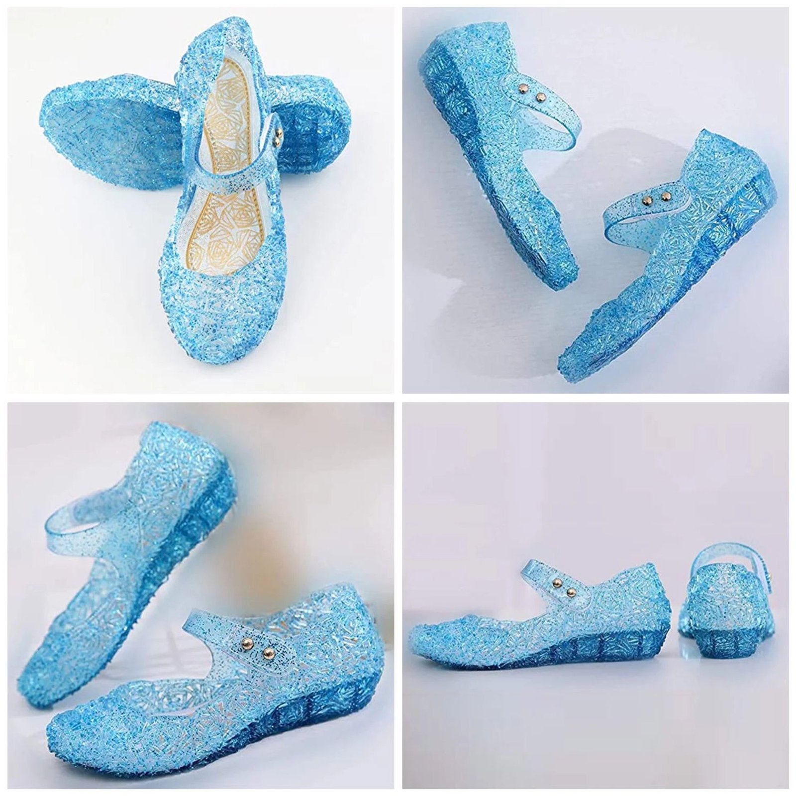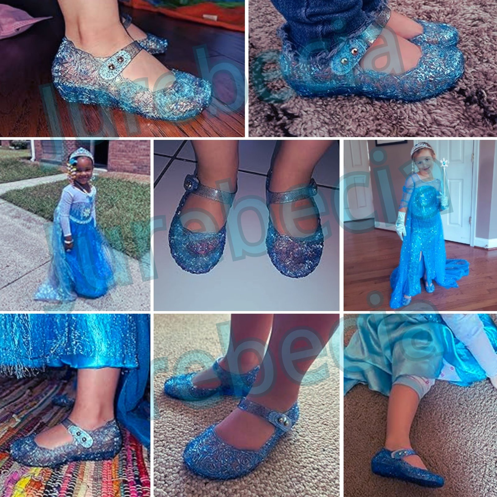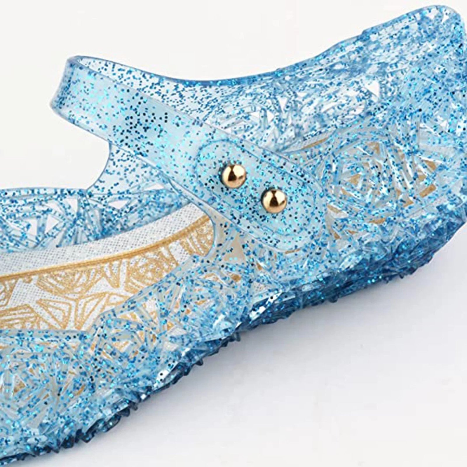 Frozen-Inspired Princess Design: Sparkly jelly flats inspired by beloved characters, perfect for dress-up, birthdays, and Disney-themed parties. Transparent glitter material elevates any outfit.