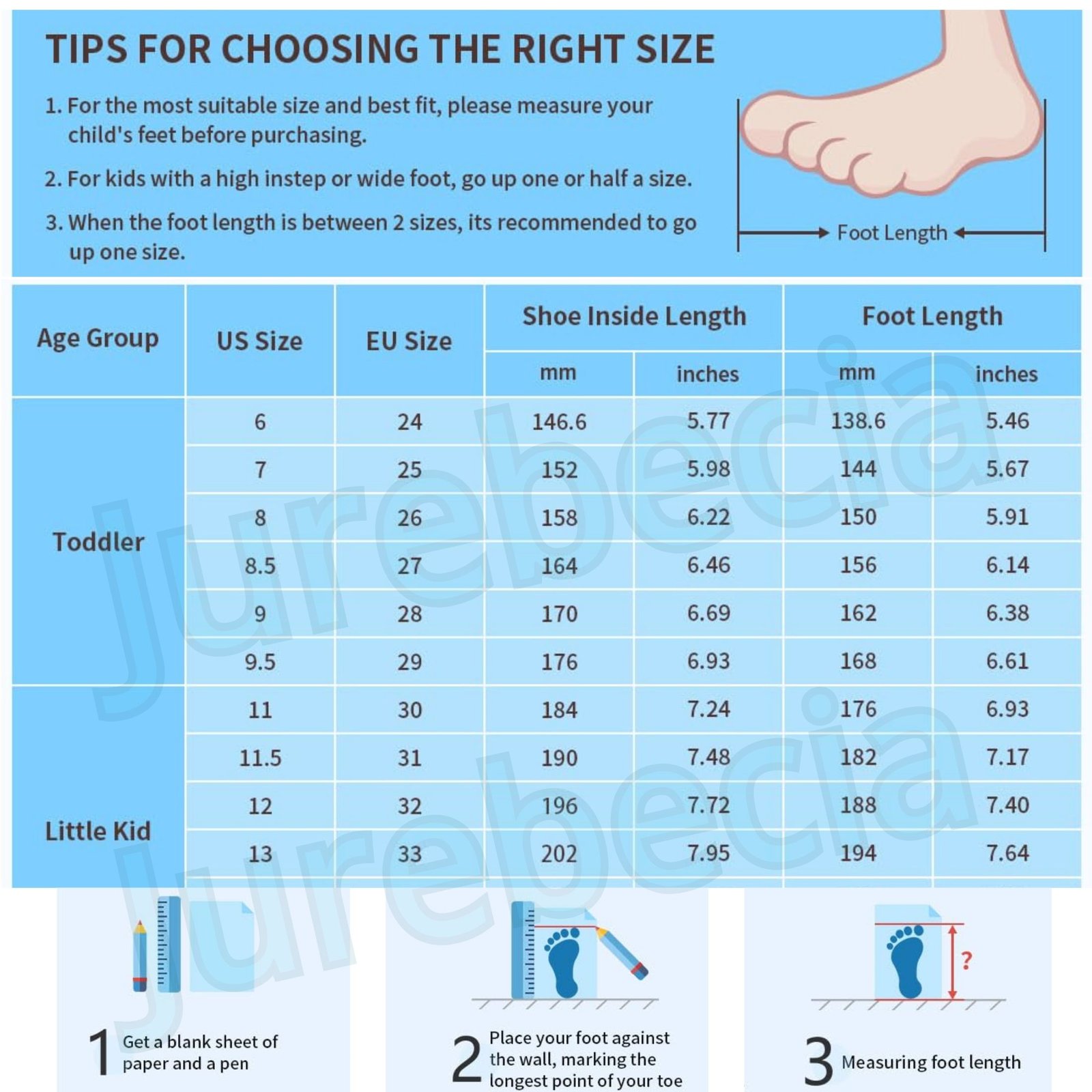 ✔ Zero-Risk Fit: Toddler 6-9.5 & Little Kid 11-13 sizes. Pro Tip: Wide feet? Size up ½!
