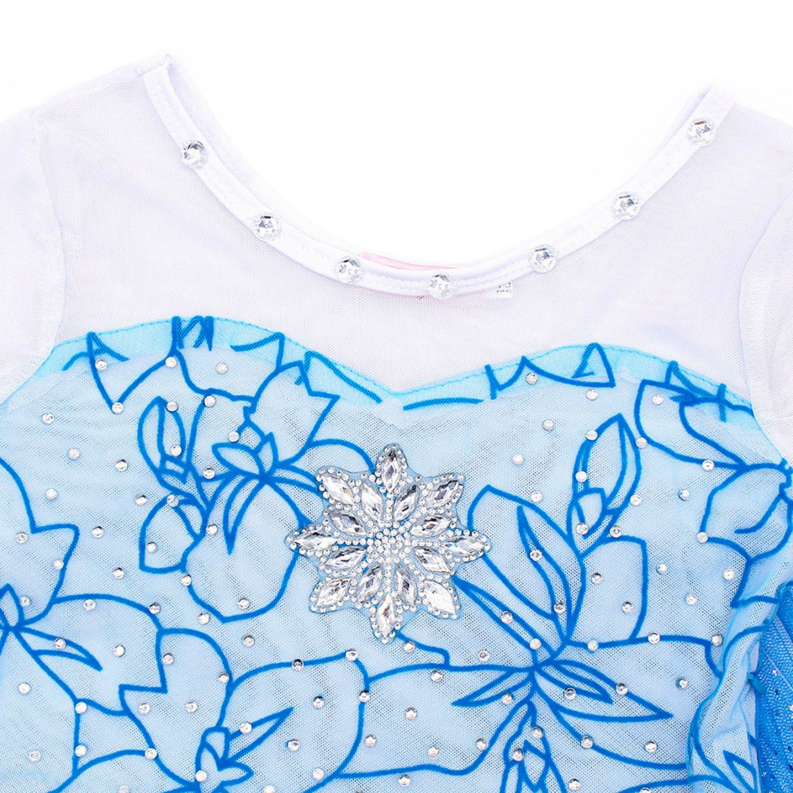 【ELEGANT PRINCESS COSTUME】premium quality glamorous blue elsa dress with a sparkling cape,elegant sheer sleeves,a long organza cape with sparkling snowflakes add the finishing touch.