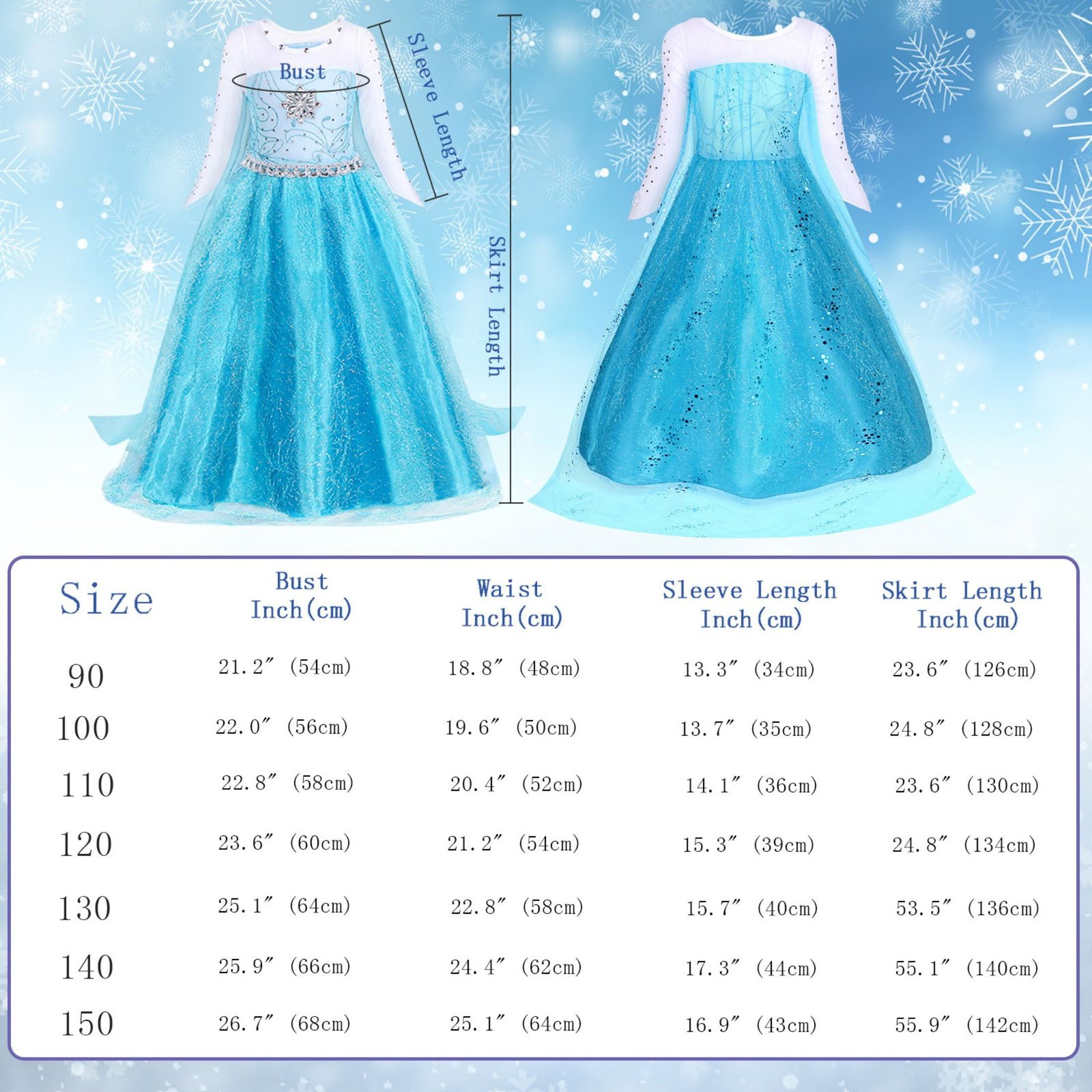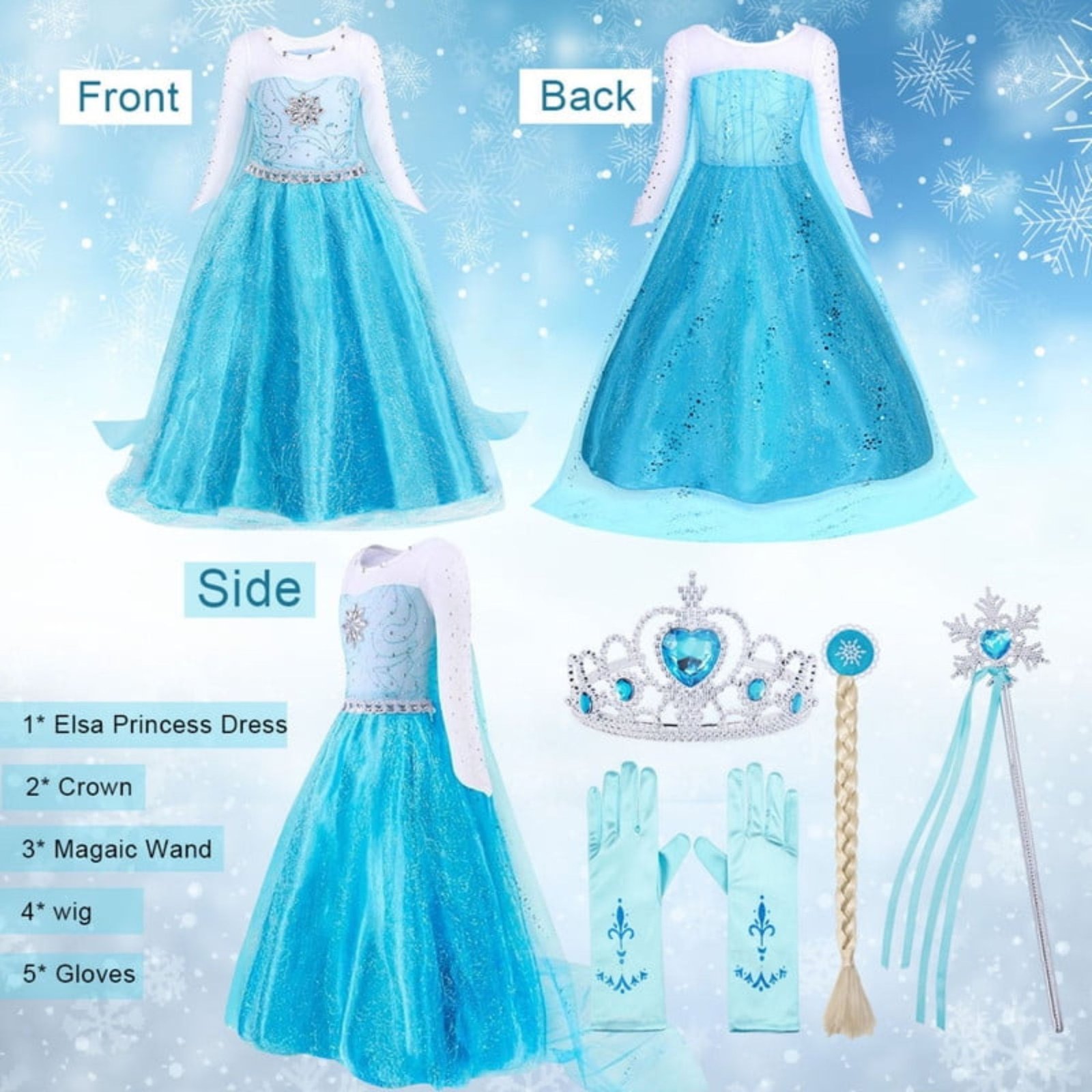 Benylion Girls Ice Costume Princess Snow Dress up Blue Dresses with Cosplay Accessories Crown Wand & Gloves for 5-6 Years