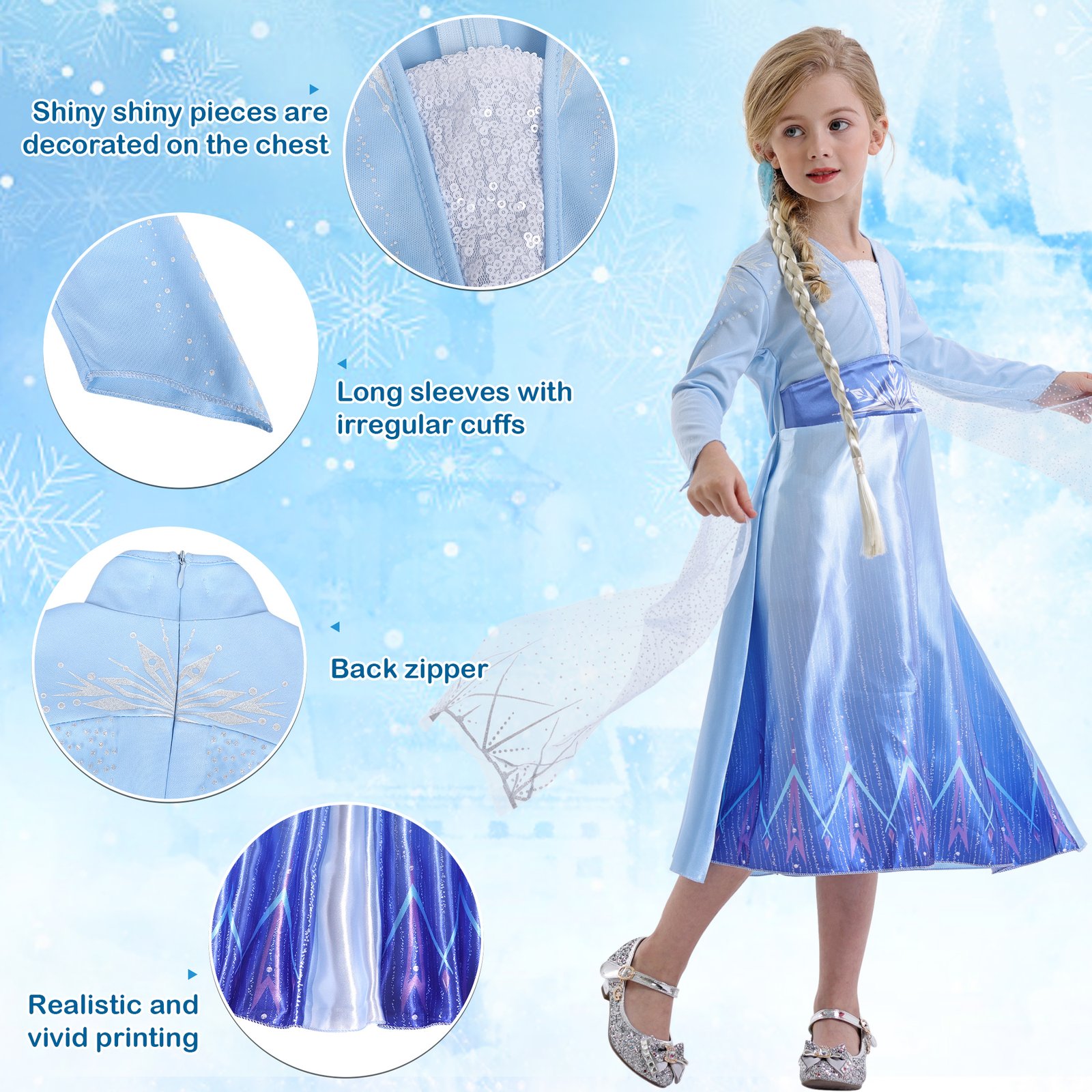 【Elegant elsa Princess Dress】high-quality girls princess dresses,attractive blue Elsa dress with cloak.all the girls love it a lot and can not resist it.every girl feels like a real elsa princess in the animated world.