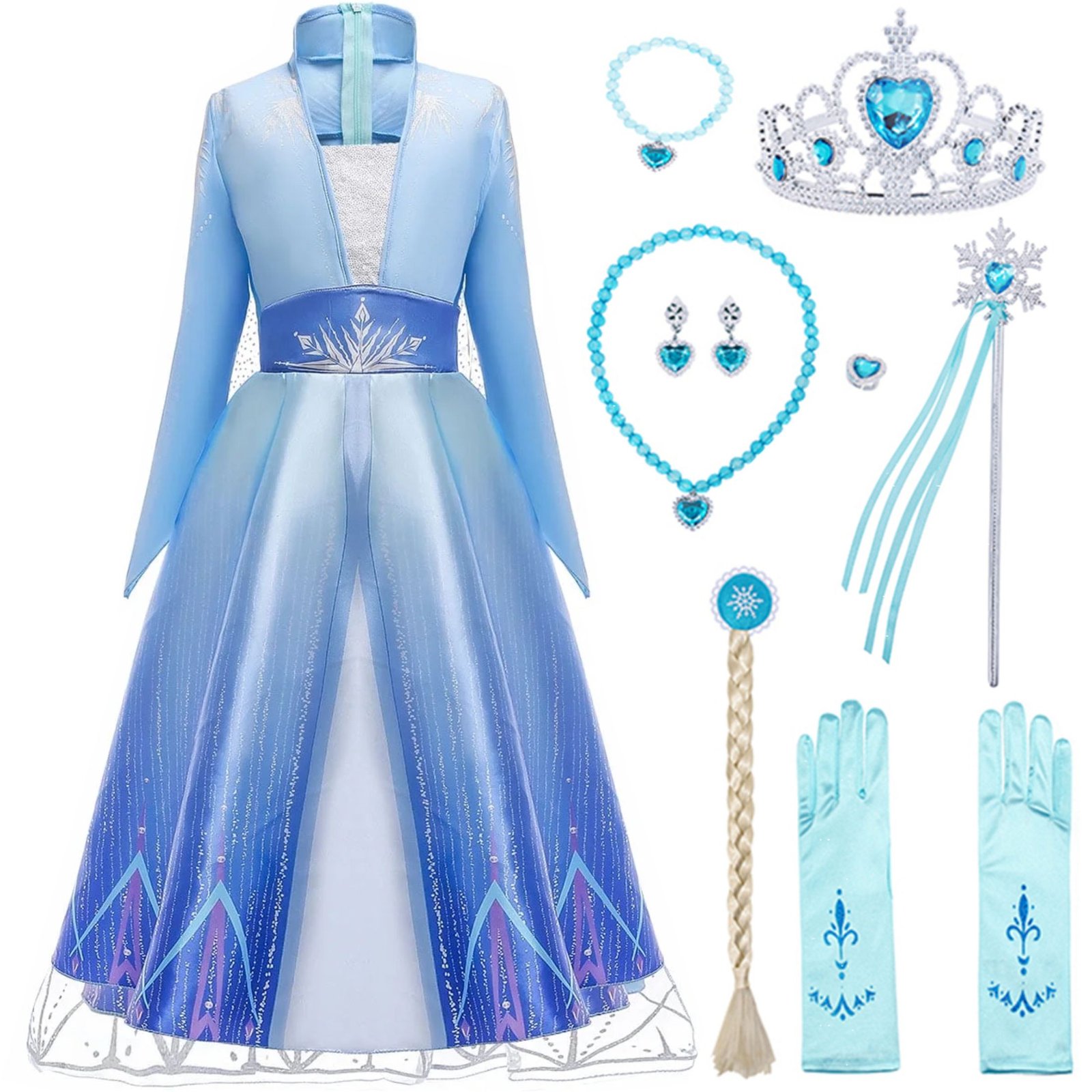 【Elsa Costume Up Accessory】the princess set does not only contain elsa dresses but Elsa princess crown, elsa magic wand,elsa gloves,elsa braid,let your girl dress up a real elsa princess.