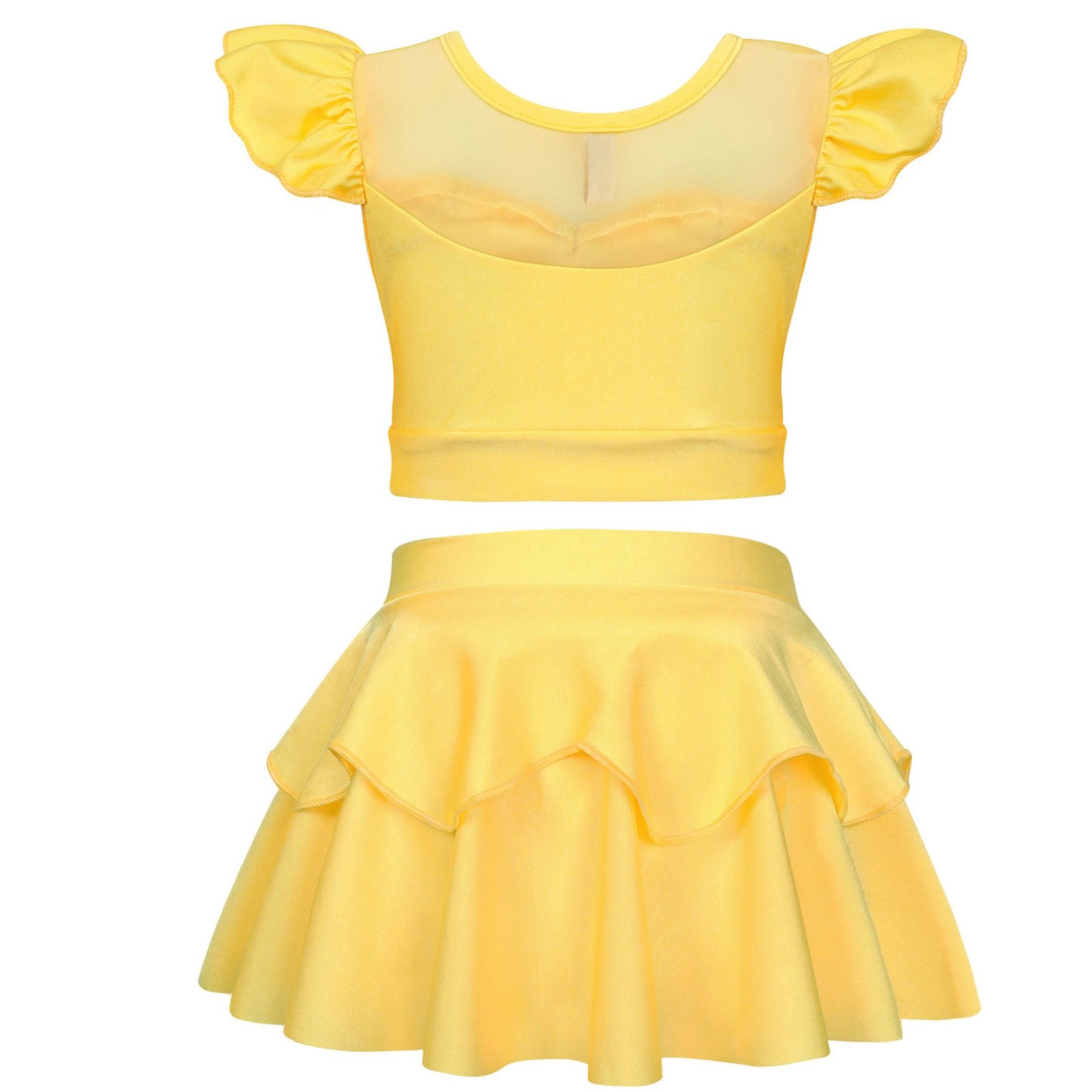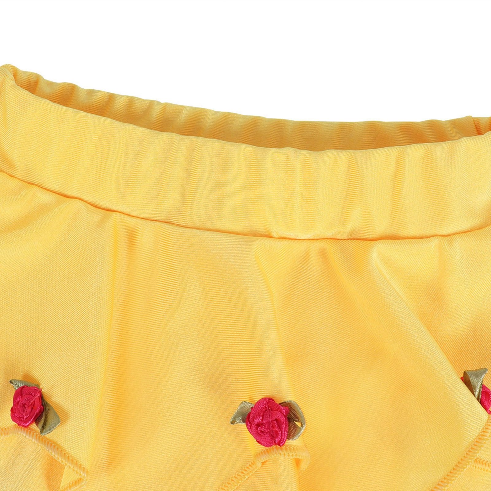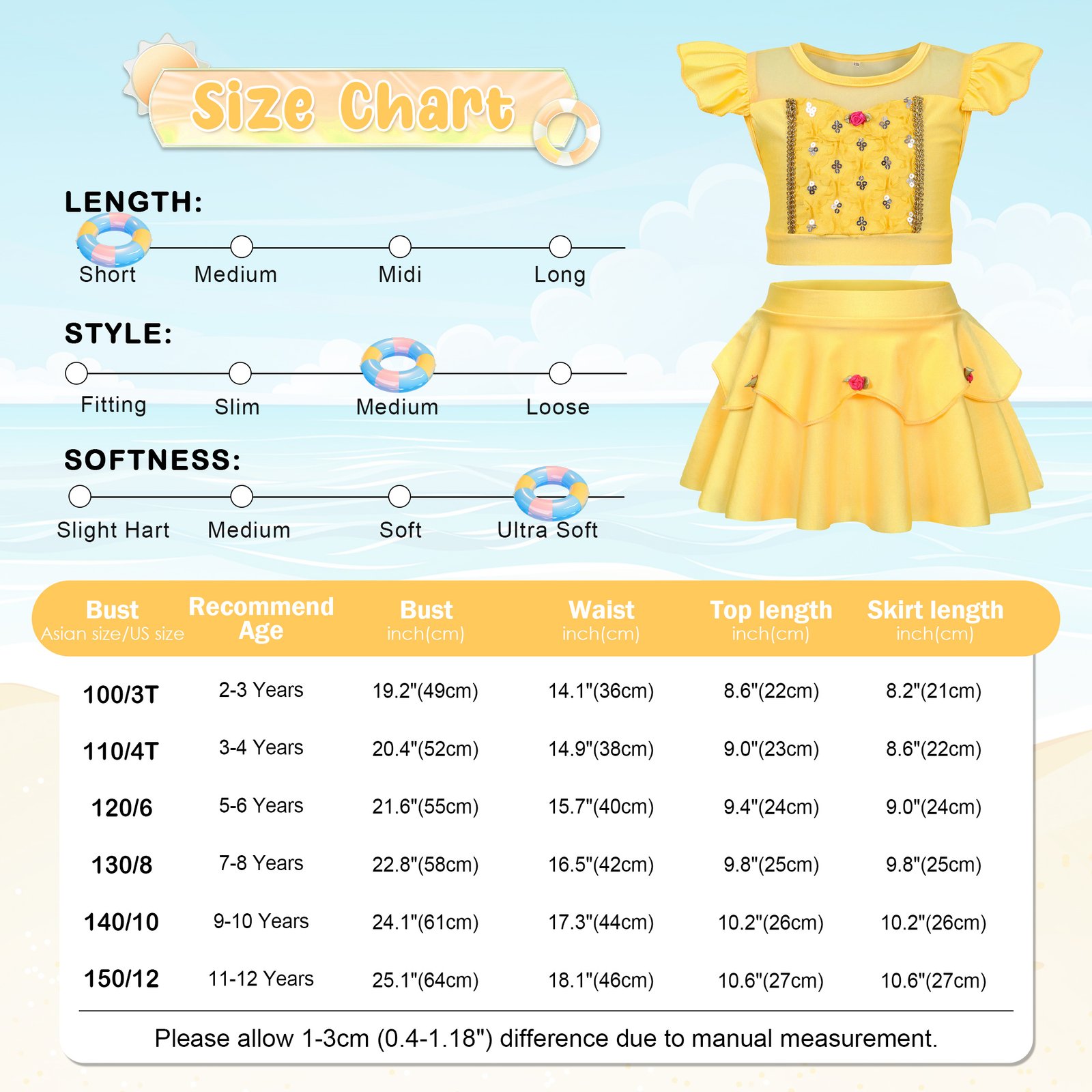 Lovely ruffles off shoulder tankinis with shoulder straps allows your little girl to move freely. Shoulder straps can adjusted in length. And there is a adorable bow on the swimming skirt.