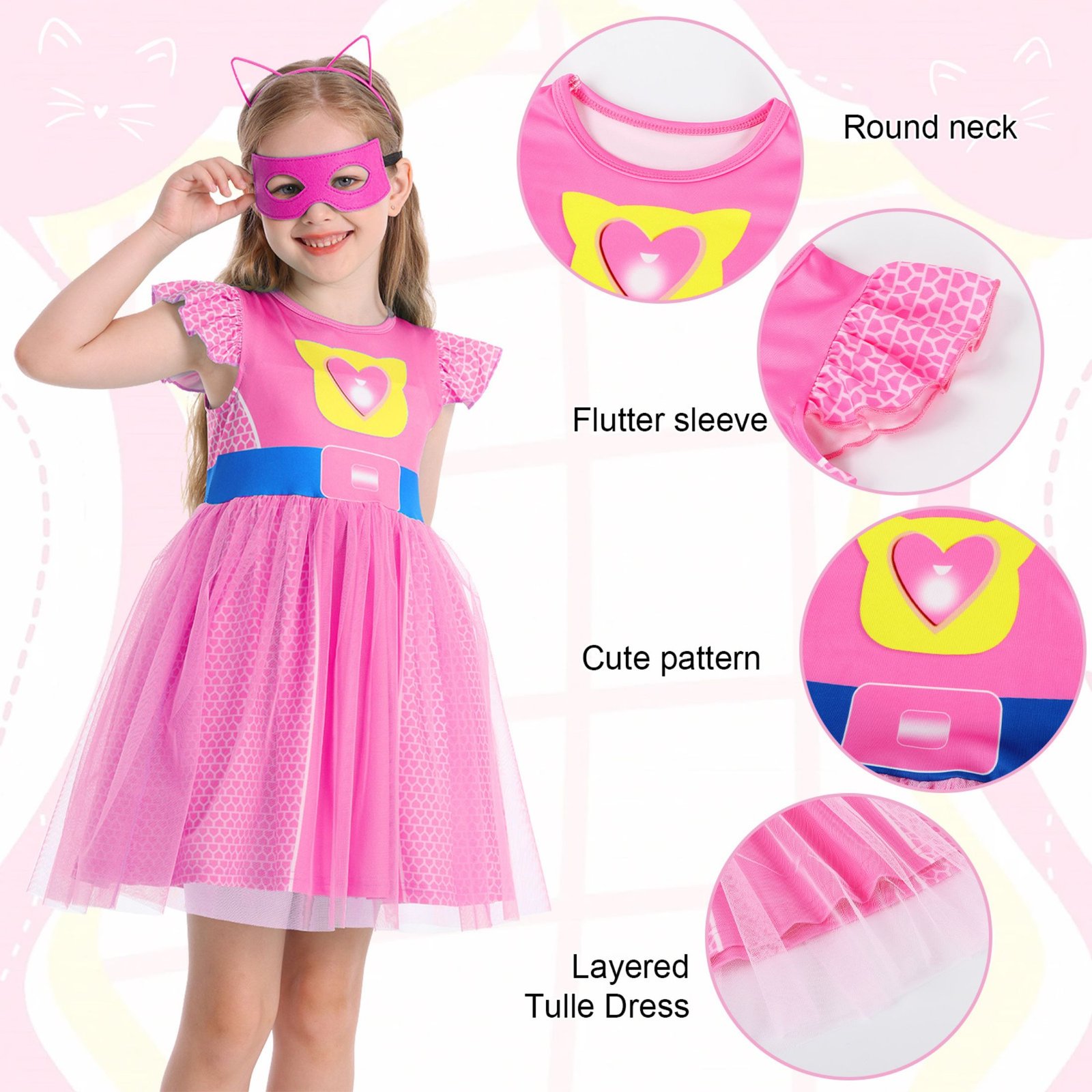 Adorable Design:Original colors from movie, fancy Dress with flutter sleeves, high-quality cat paw printing. With this novelty costume, your girl is ready for the cosplay game of superheros