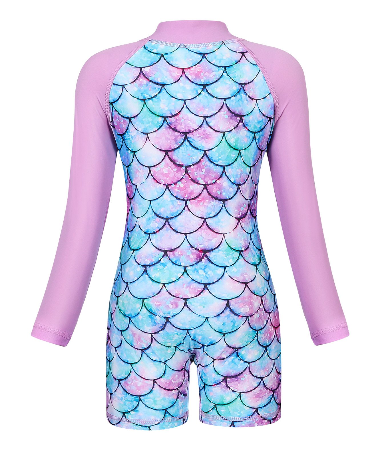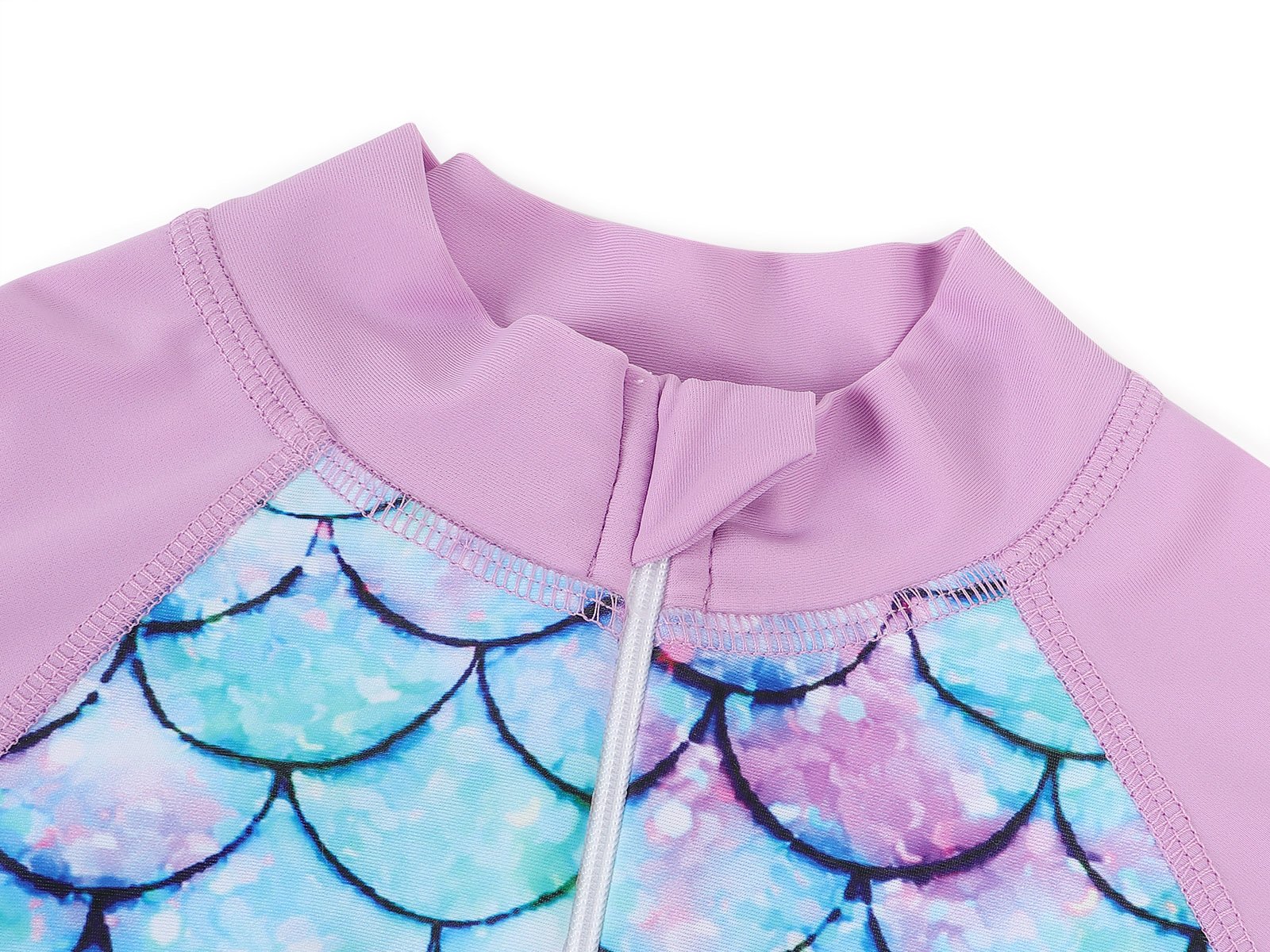 Long sleeves, crew neck, printed with fish scales pattern. Front zipper closure for easy dressing. Zipper flap for protection.
