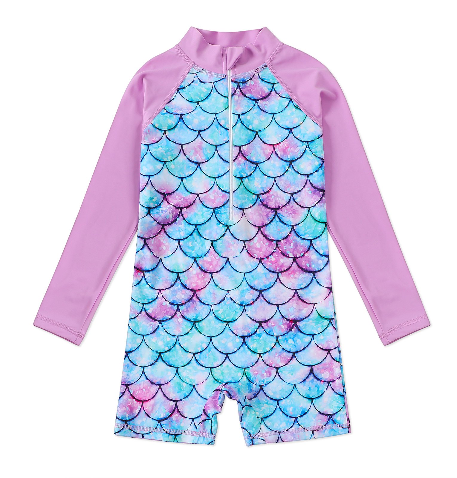 Gorgeous piece Princess Mermaid bathing suit inspired swimsuit with digital print pattern. Wear this swimming costume and sail out to the ocean adventure!