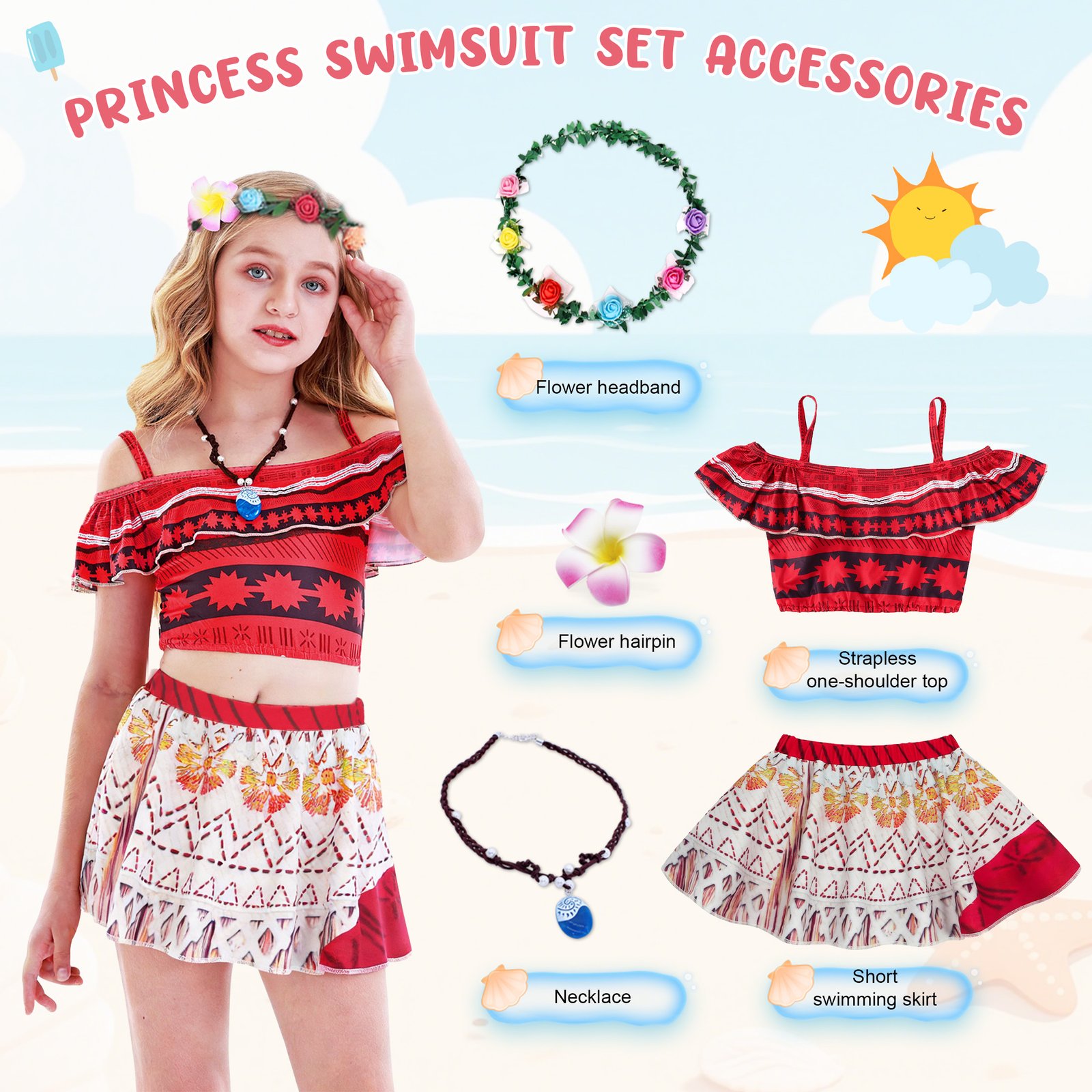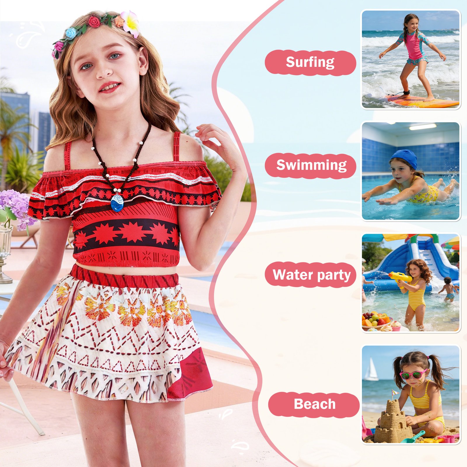 【Widely Used】This Moana princess swimwear is perfect for Moana themed, Moana pool party, birthday poolside party and cosplay dress up, beach, swimming, outdoor, bath, party, vacation, spa, etc.